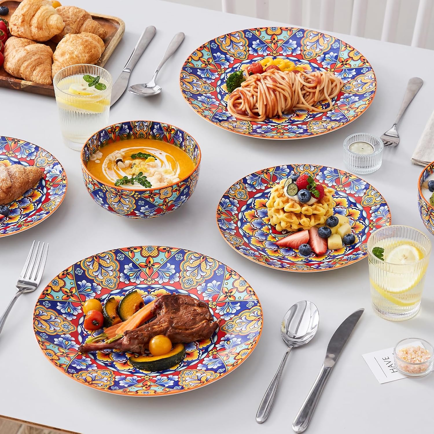 - 【Safety and Durable】 Our glazes are lead free, meaning you will never have to worry about lead leaching into your body system and making you sick. These dishes are fired at a high temperature to maximize the strength of the porcelain.