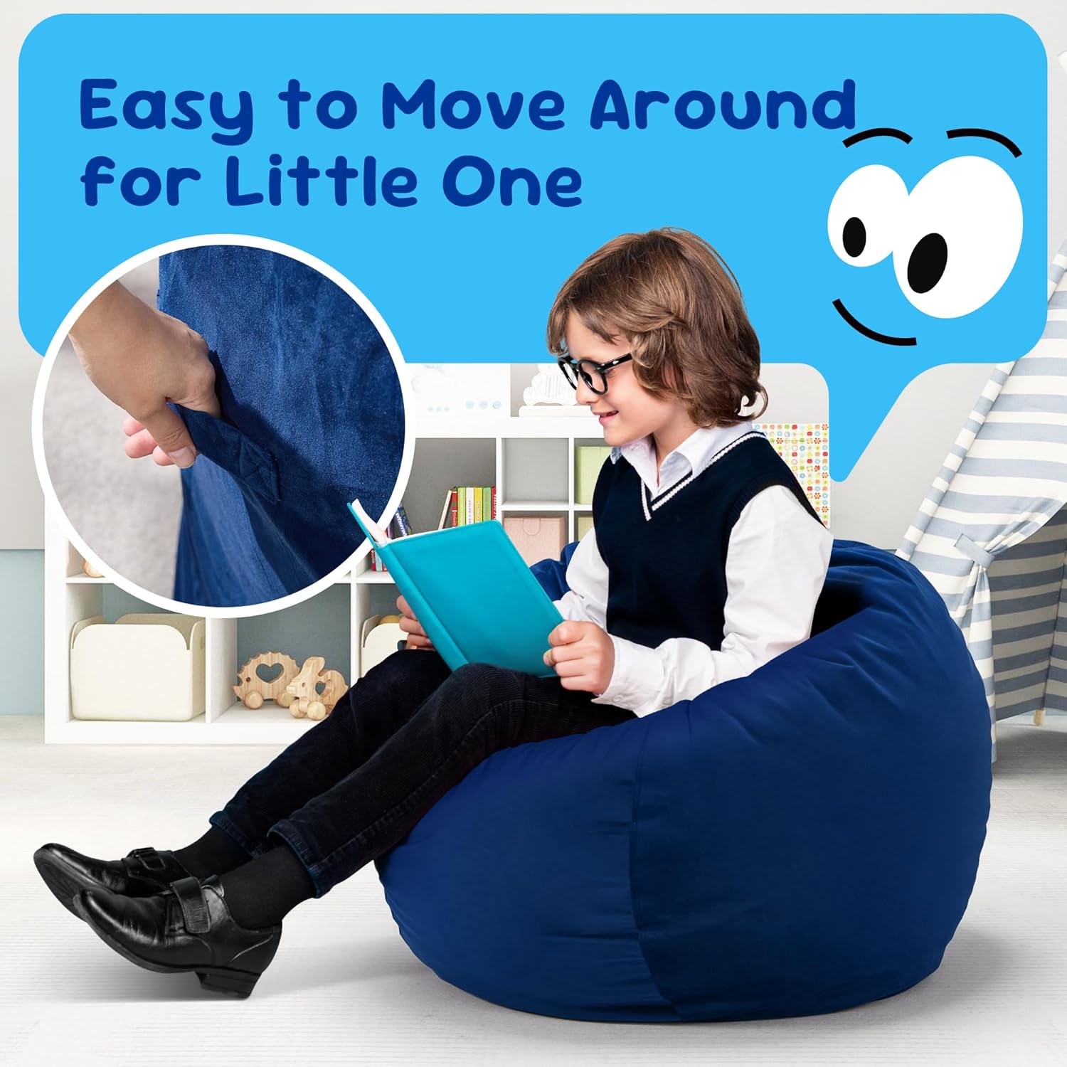 - Thoughtful Details: The bean bag chair comes with a carrying handle, making it easy for your little one to move it from room to room. Moreover, the small bean bag chair features a side pocket where your litte one can store their own belongings.