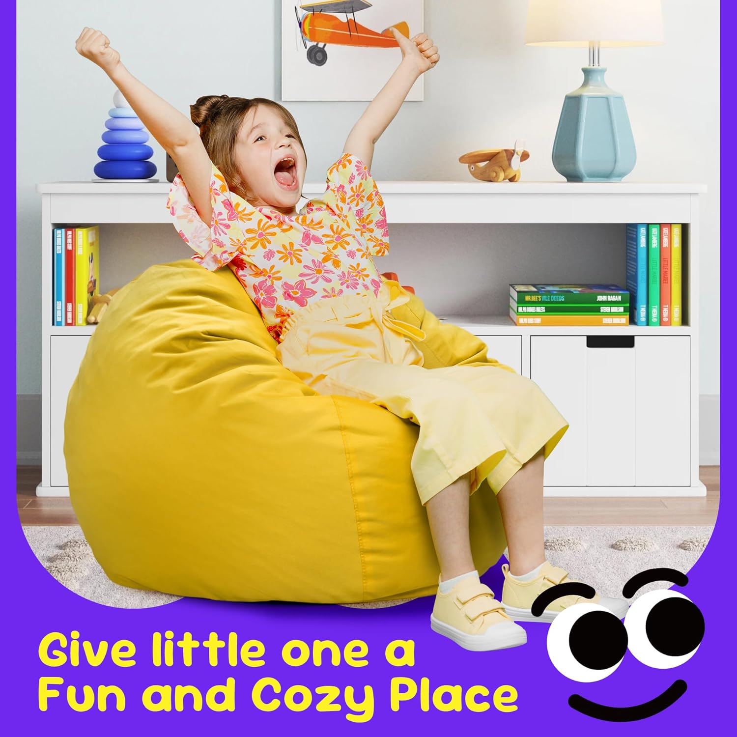 - Thoughtful Details: The bean bag chair comes with a carrying handle, making it easy for your little one to move it from room to room. Moreover, the small bean bag chair features a side pocket where your litte one can store their own belongings.