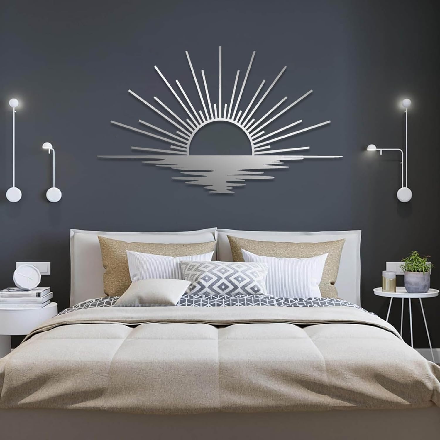 - Sunrise Metal Wall Art: Themed around the rising sun, this elegant metal sun wall decor finish with minimalist line art fixes the sun at the moment it rises over the eastern horizon to add a warm touch to any room you wish to decorate, it's the first light of the morning that belongs to you