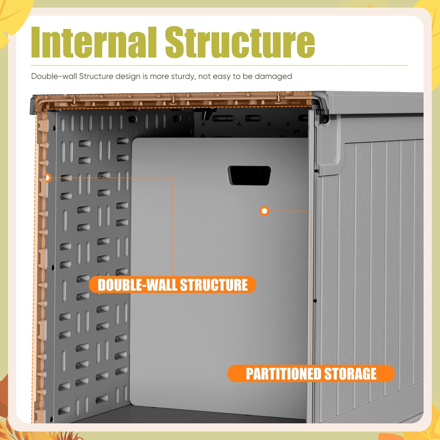 Devoko 240 Gallon Double-Wall Deck Box with Divider, Side Handles, Resin Outdoor Large Storage Box Waterproof and Lockable for Patio Furniture, Garden, Pool (Grey)