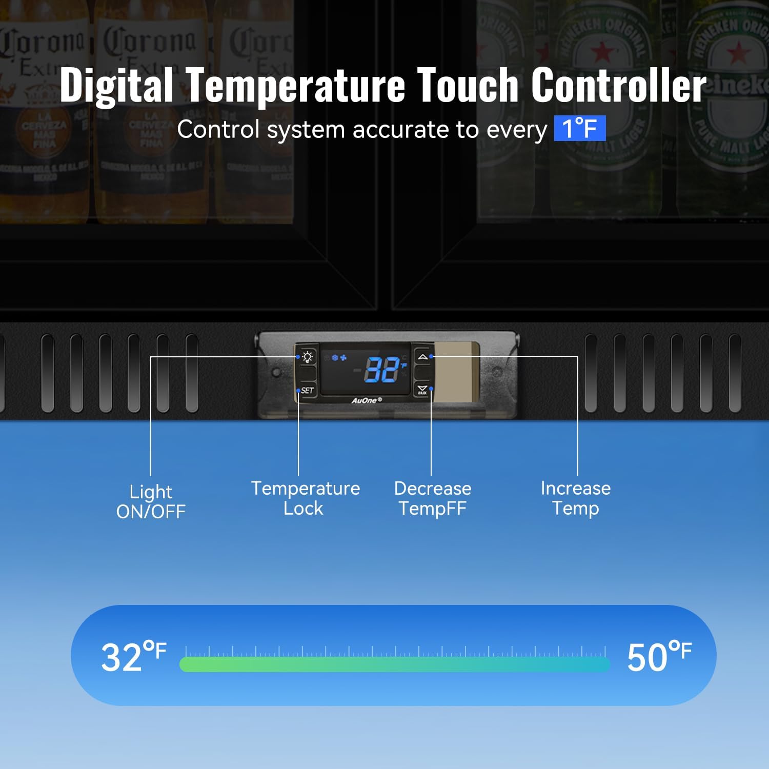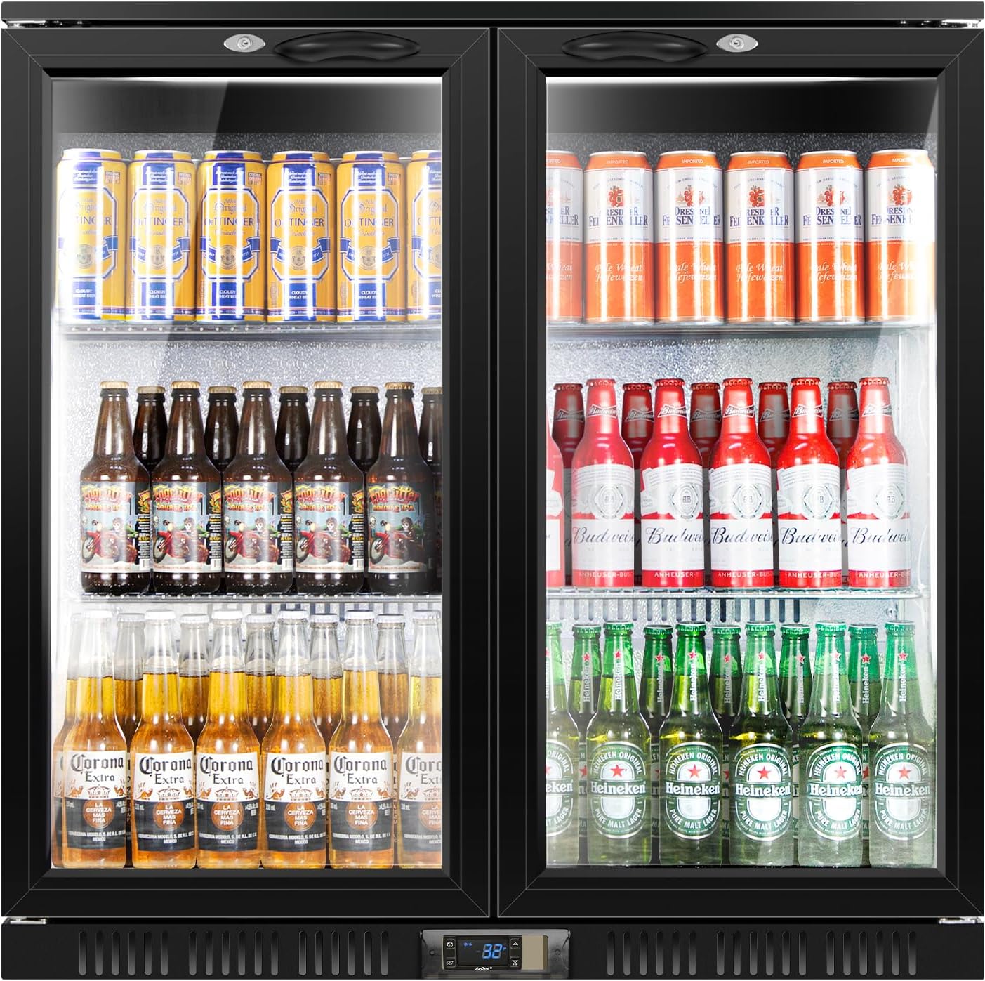 Tylza Back Bar Cooler With 2 Glass Doors, 200L Under Counter Back Bar Refrigerator with LED Lighting, Safety Locks, Counter Height Bar Beverage Cooler for Beer, Soda Drinks, Wine, Black