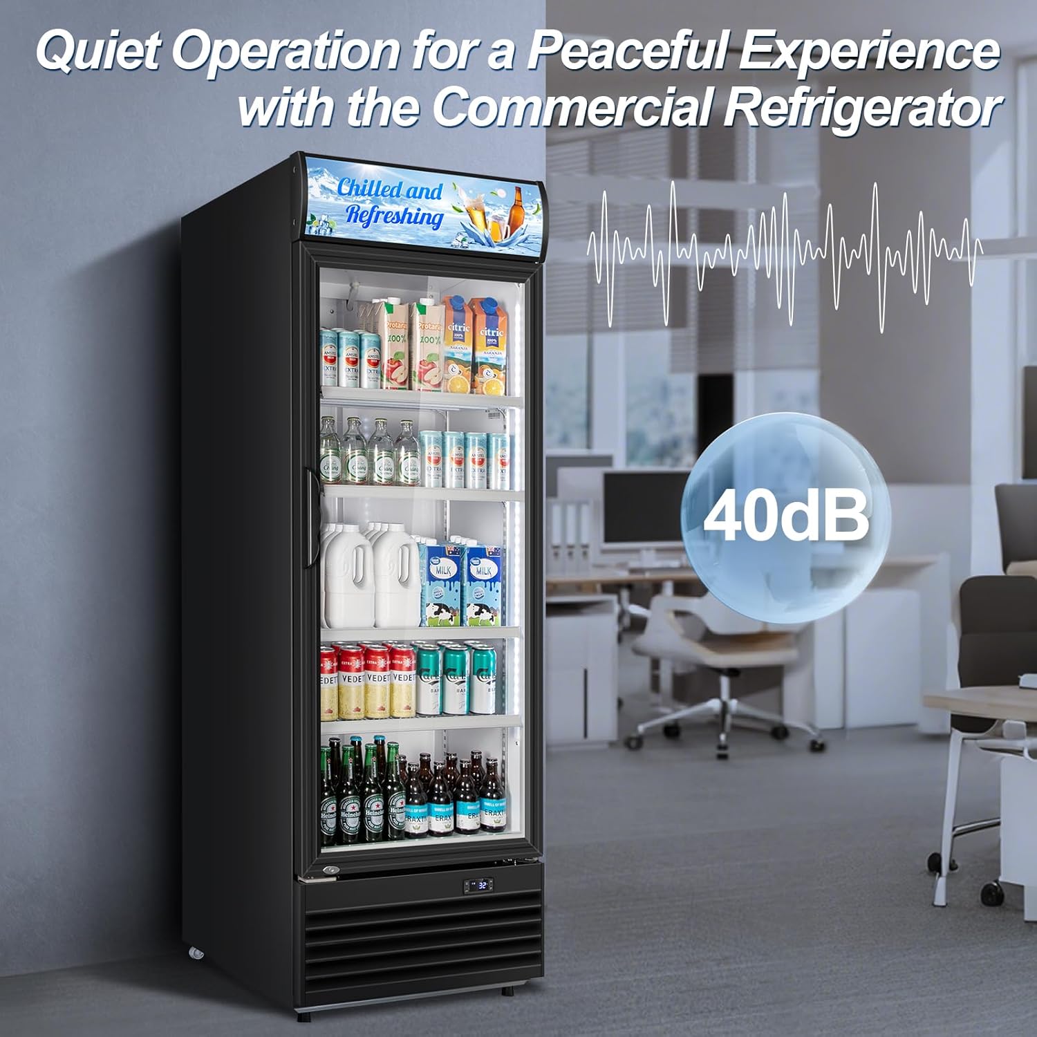 Tylza Commercial Refrigerator with Glass Door Display Beverage Fridge, 11.15 Cu Ft Upright Beverage Cooler Merchandiser with Replaceable Advertising Light Board, Rebound Door, Fast Cooling, Black