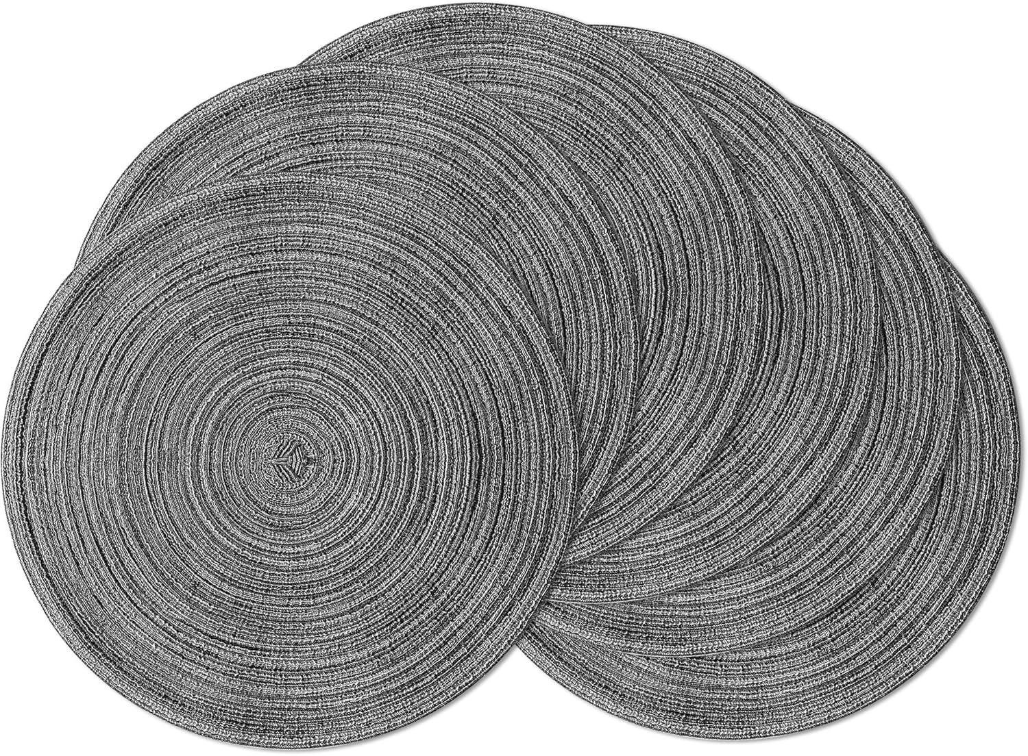 Leetaltree Round Placemats Heat and Slip Resistant Cotton Table Mats, Washable Bohemian Placemats for Dining Tables (Charcoal, Set of 6)