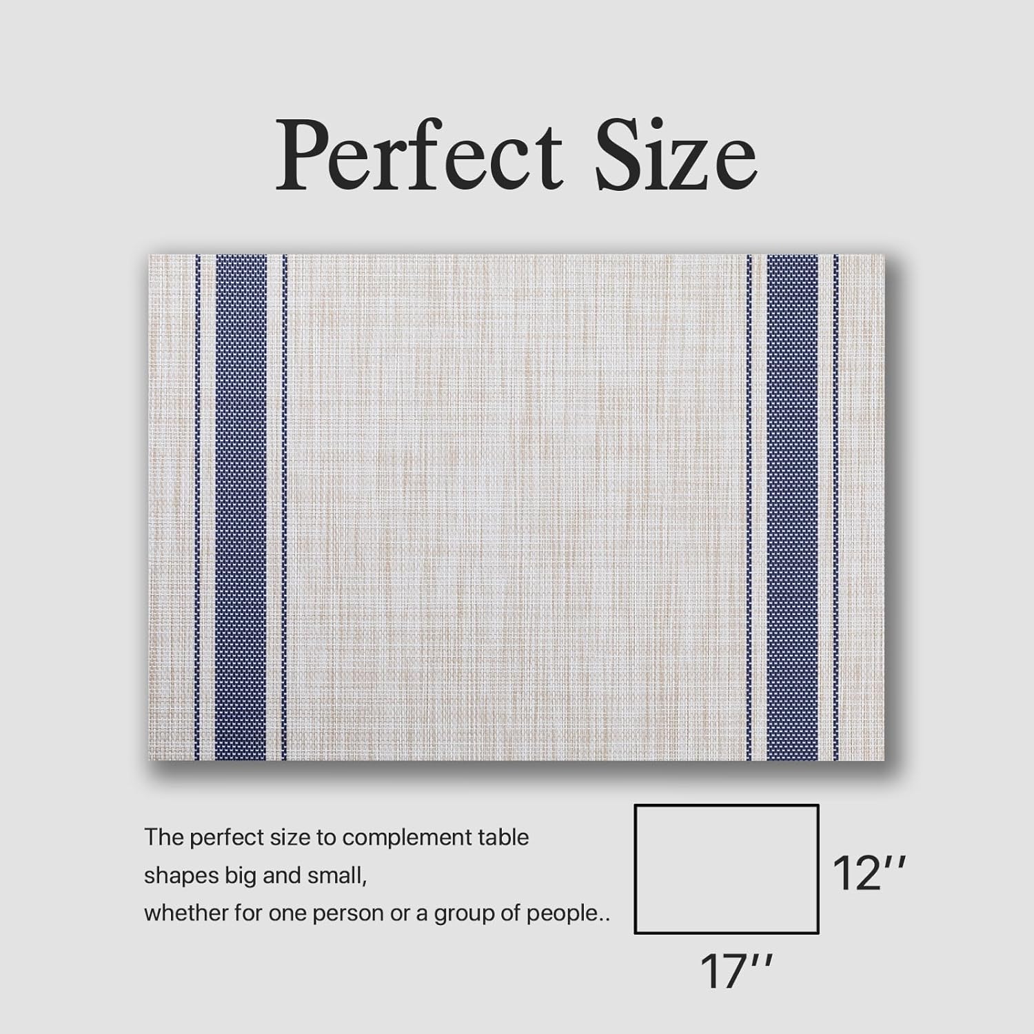 Placemat Set of 4 - Easy Clean Woven Vinyl Placemats for Dining Table, Indoor/Outdoor Place Mats, Washable PVC Table Mats(Blue Skyline)