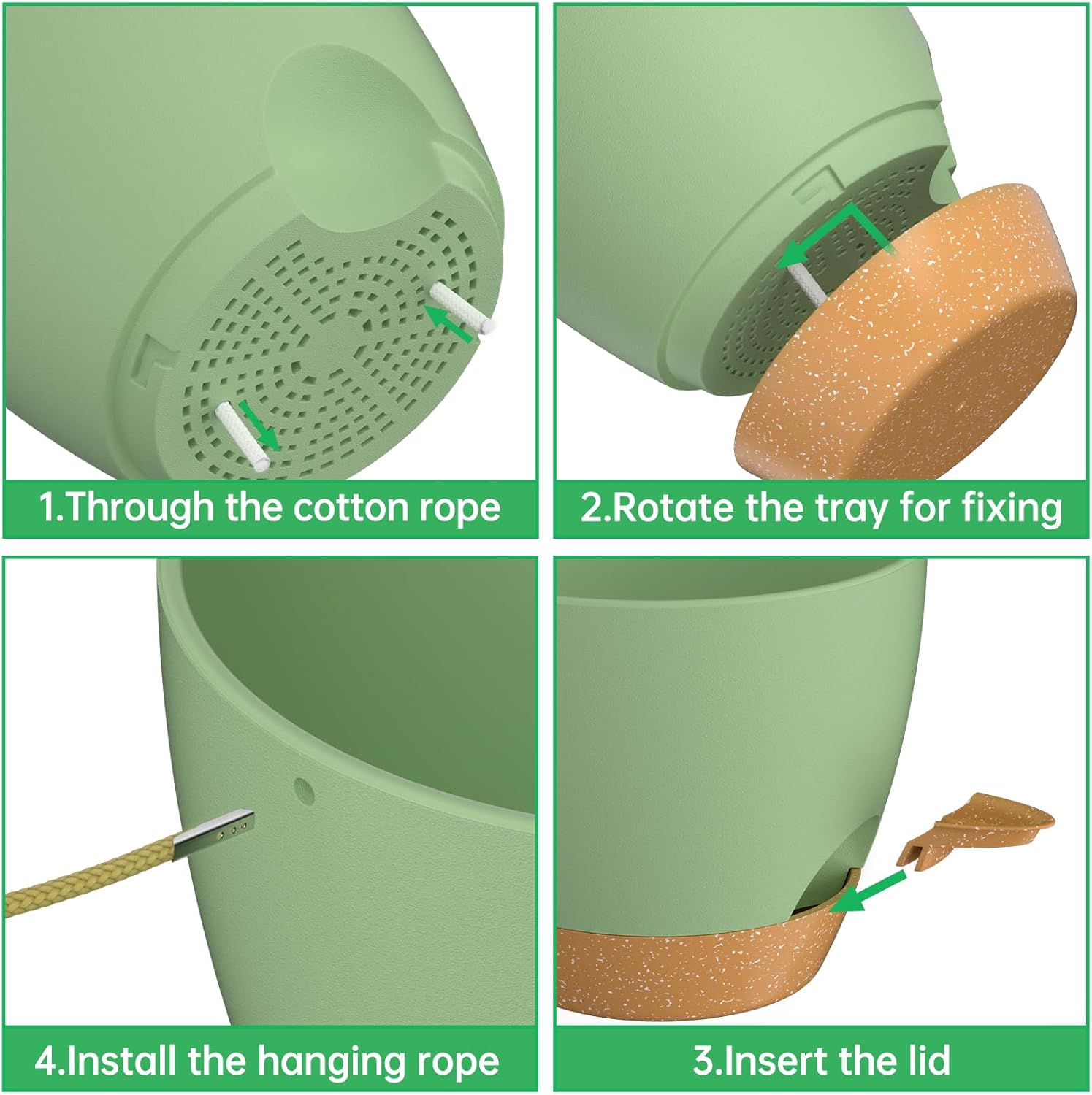 - Self Watering Hanging Planters: The hanging planters have an absorbent cotton rope and a removable reservoir. It ensures that your plants are not soaked in water and prevents root rot. The large capacity saucer provides enough water for your plants and the plant pots will keep them growing normally for 7 days, so you don't have to worry about your plants drying out even if you are travelling far away;
