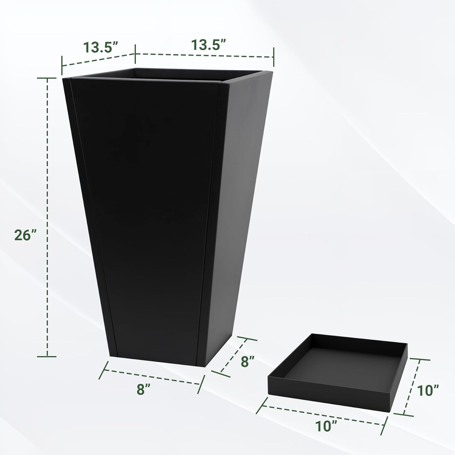 Tall Metal Planter 26" H - 2 Pack, Tall Planters with Removable Insert Shelve & Saucer Trays, Metal Outdoor Planters for Porch, Garden, Patio, Yard(Black)