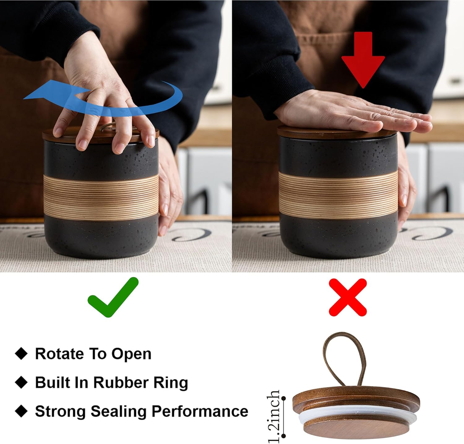 Ceramic Jar with Lid, Coffee Container Kitchen Food Storage Jars for Spice Sugar Tea Bag, Stackable Decorative Jars for Countertop, Black & 18oz