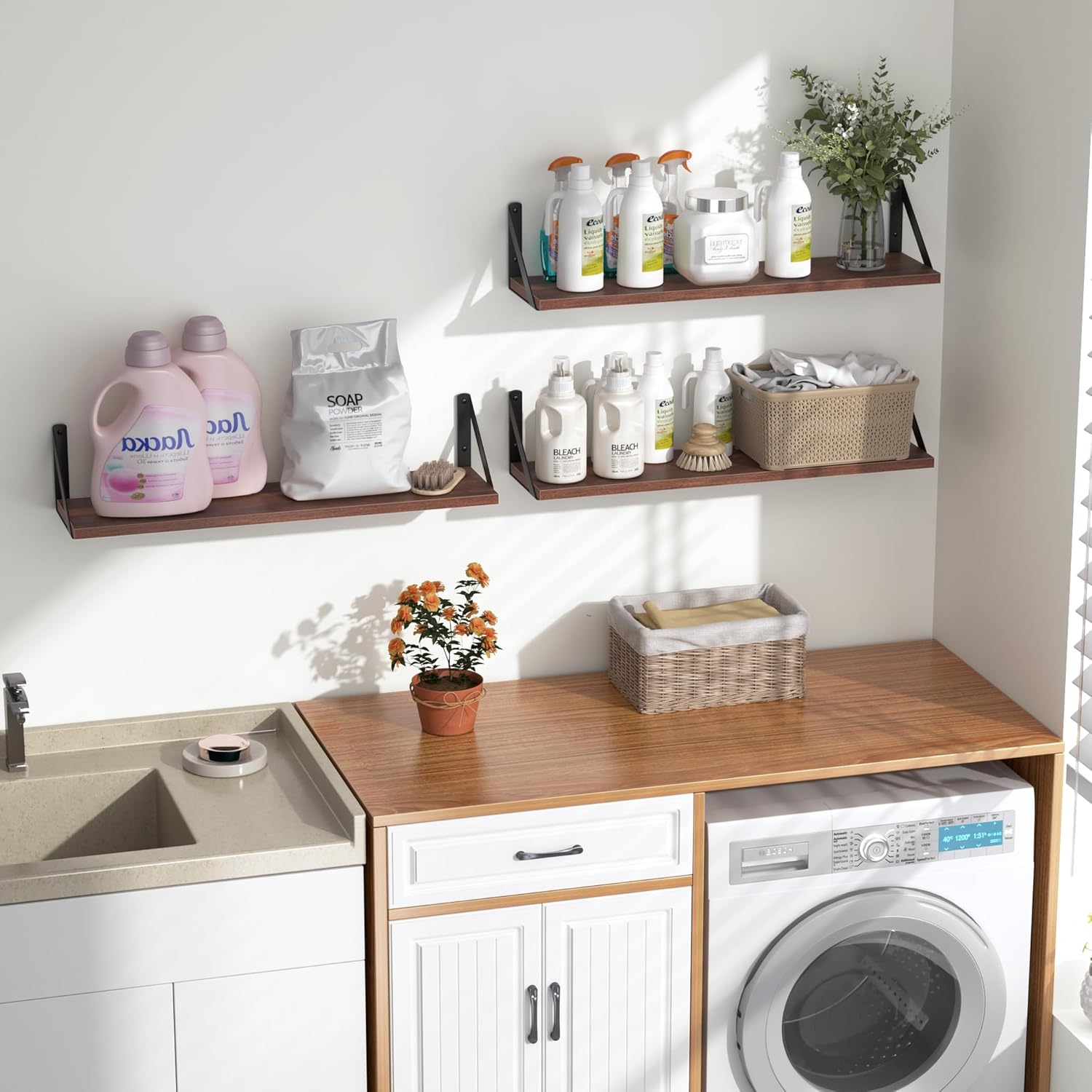 - 【MULTIFUNCTIONAL WALL SHELF】The floating shelves can turn a small area into an organized space, providing storage space for bedroom, bathroom, kitchen, easily placing greenery, books, crafts, spice jars, toiletries