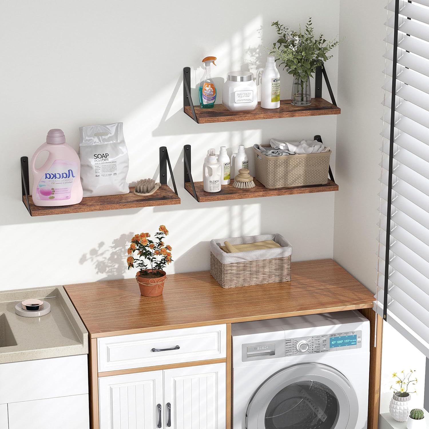 Heimlove Floating Shelves for Wall, 16 Inch Long Wood Floating Shelves Set of 3, Wall Mounted Hanging Shelf for Bathroom Bedroom Kitchen, Rustic Brown