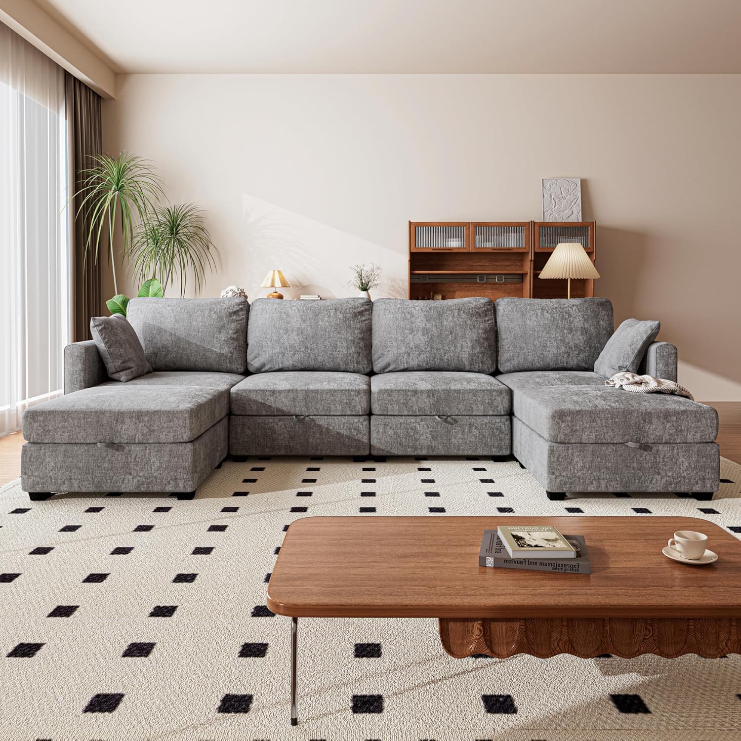 - Soft & Comfortable: The sofa adopts layered and thickened cushions, cloud-like softness combined with firm support. The spacious U-shaped layout provides ample seating, perfect for gatherings. Whether you're relaxing alone or hosting friends, this sectional sofa will give you a comfortable experience.
