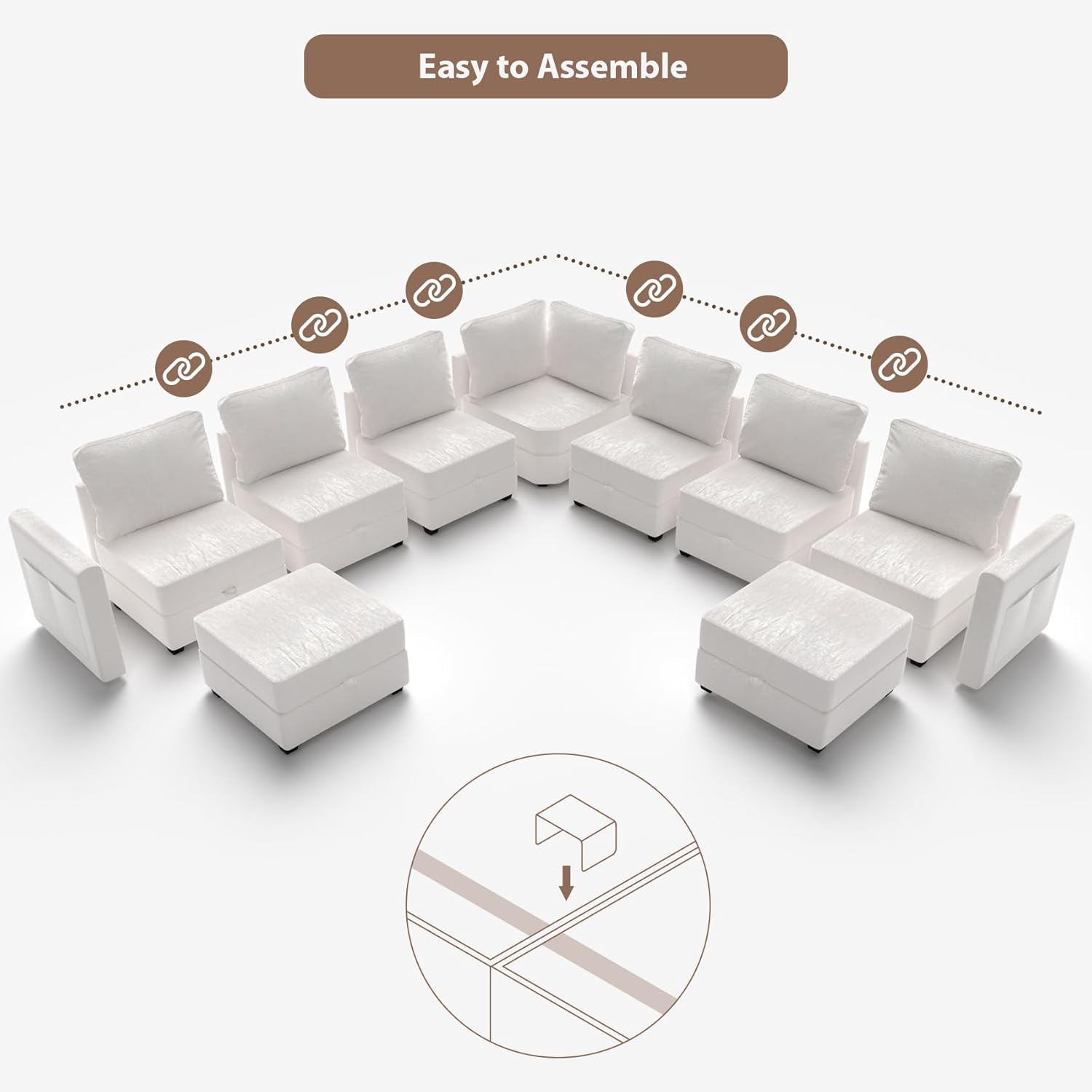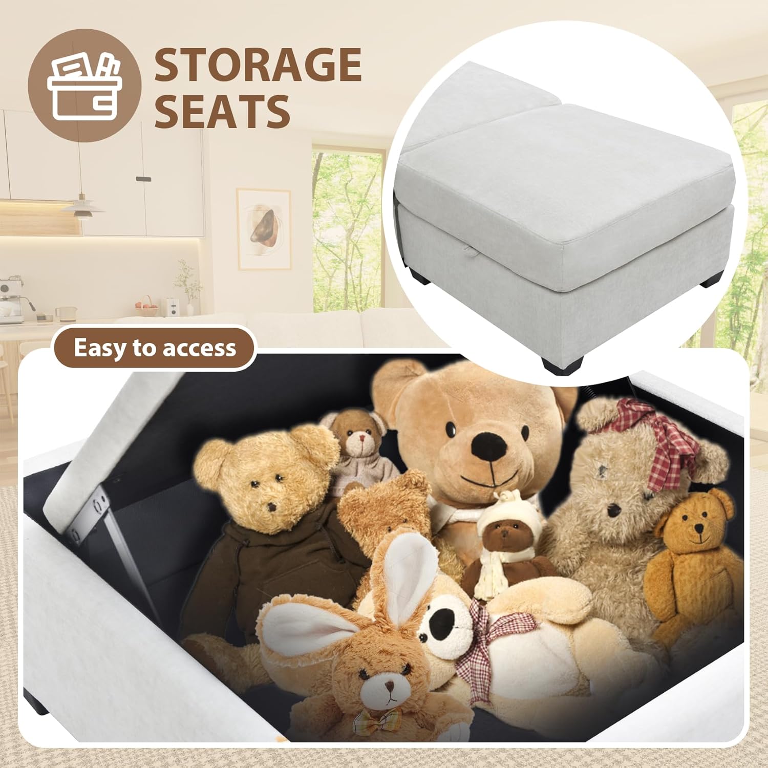 mestyl Modular Sectional Sofa Convertible Sofa Couch Set with Storage for Living Room, Modern 7 Seater Modular Sectional Couch with 2 Movable Ottoman (Beige)