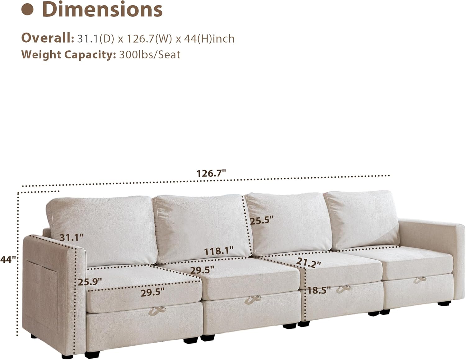 mestyl Modular Sectional Sofa Convertible Sofa Couch Set with Storage for Living Room, Modern 4 Seater Modular Sectional Couch (Beige)