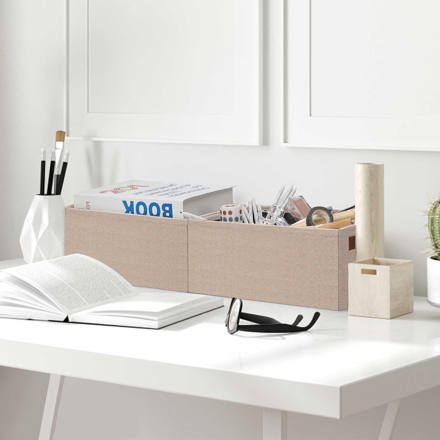 - 👍【SMALL but BEAUTIFUL SIZE】Set of 12 small storage baskets, dimensions (each): 11.8(L) x 7.87(W) x 5.11(H) inch, which can store a variety of items to organize your home or office. With their perfect size and stylish appearance, these fabric storage baskets effortlessly blend with many furniture styles and color palettes, while keeping your home organized.