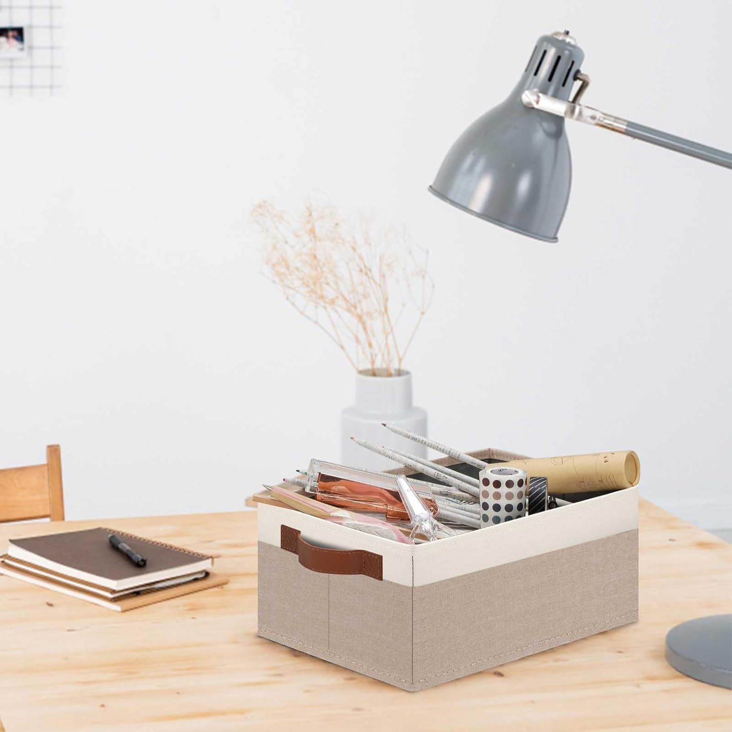 - 👍【SMALL STORAGE BINS】Set of 6 small storage bins, dimensions (each): 11.8(L) x 7.87(W) x 5.11(H) inch, which can store a variety of items to organize your home or office. With their perfect size and stylish appearance, these fabric storage baskets effortlessly blend with many furniture styles and color palettes, while keeping your home organized