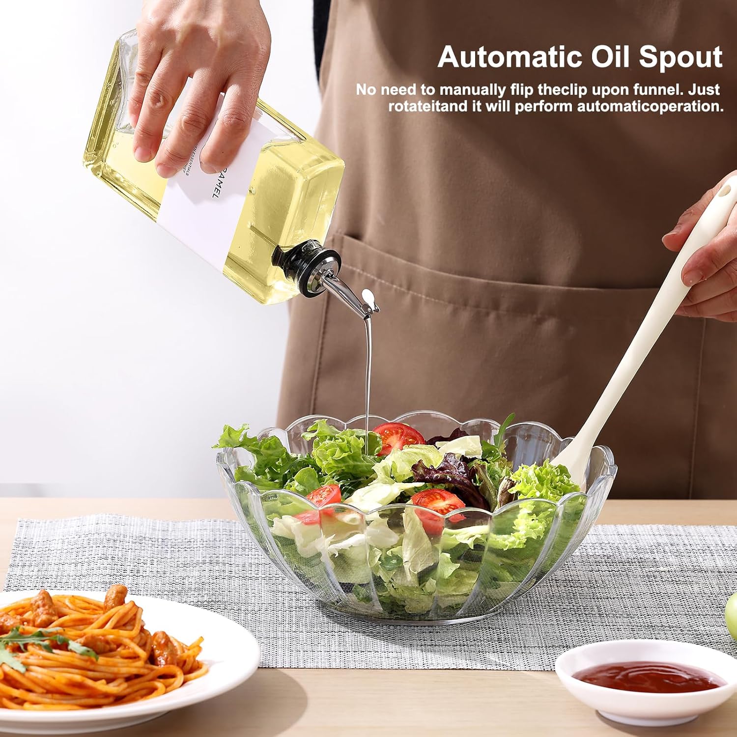 - 【Weighted Spout】Use our glass olive oil dispenser bottle with a precision spout offers effortless drizzling and portion control for salads.The metal cap with cover, it opens and closes automatically, preventing dust from falling into bottles.