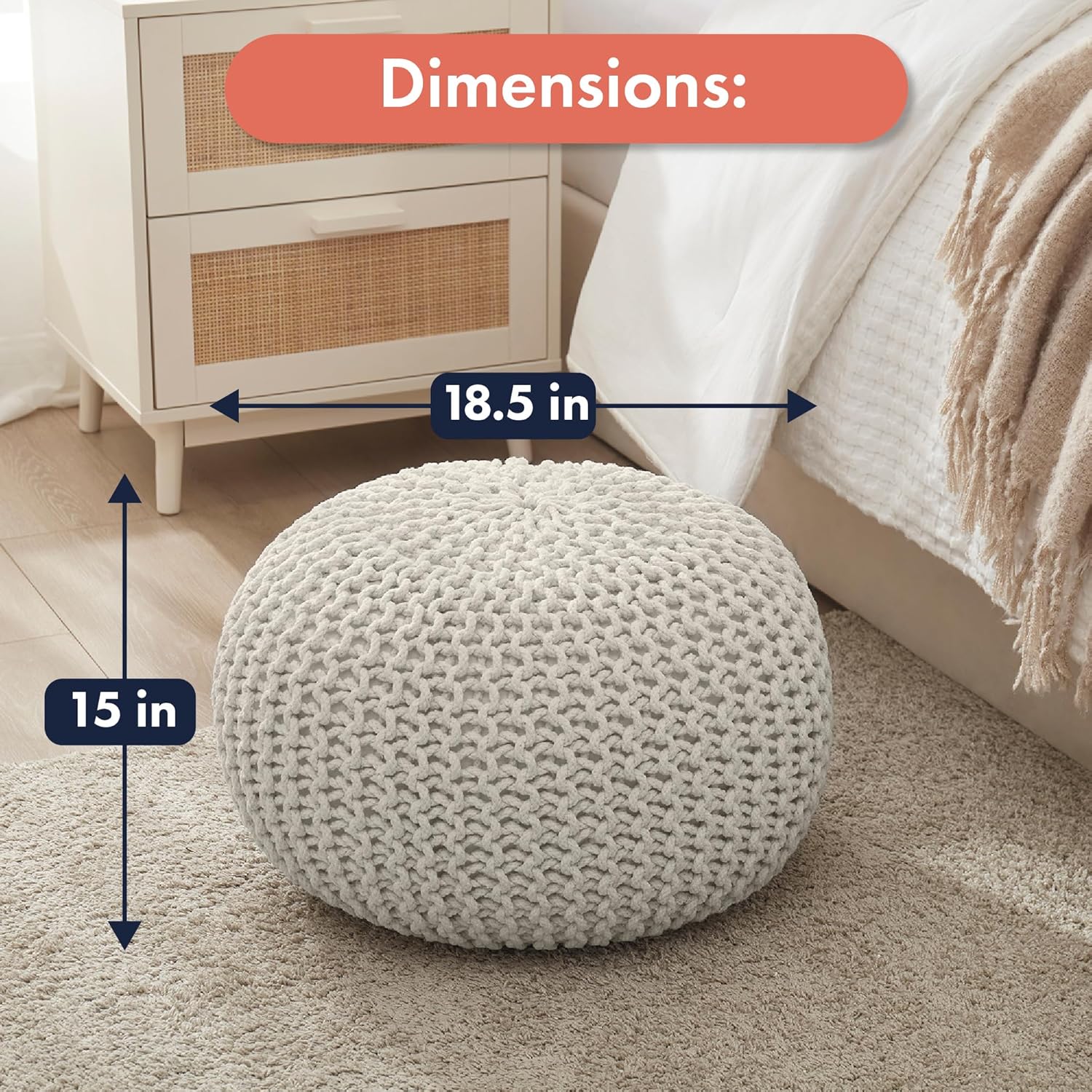 - HANDMADE CRAFTSMANSHIP: Each pouf ottoman is meticulously hand-knitted by skilled artisans. This attention to detail ensures not only a unique and high-quality piece but also adds a touch of artisanal charm to your home decor that promises to be the center of conversation and admiration.