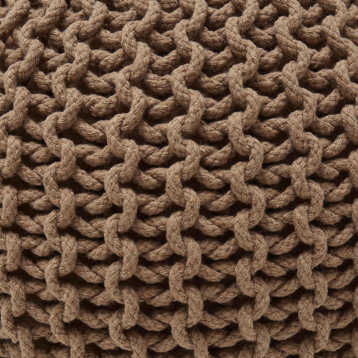 Ornavo Home Pouf Ottoman Foot Rest - 100% Cotton Pouffe - Hand Knitted Cable Braid Cord - Boho Round Stuffed Ottoman for Living Room, Bedroom - Taupe/Brown