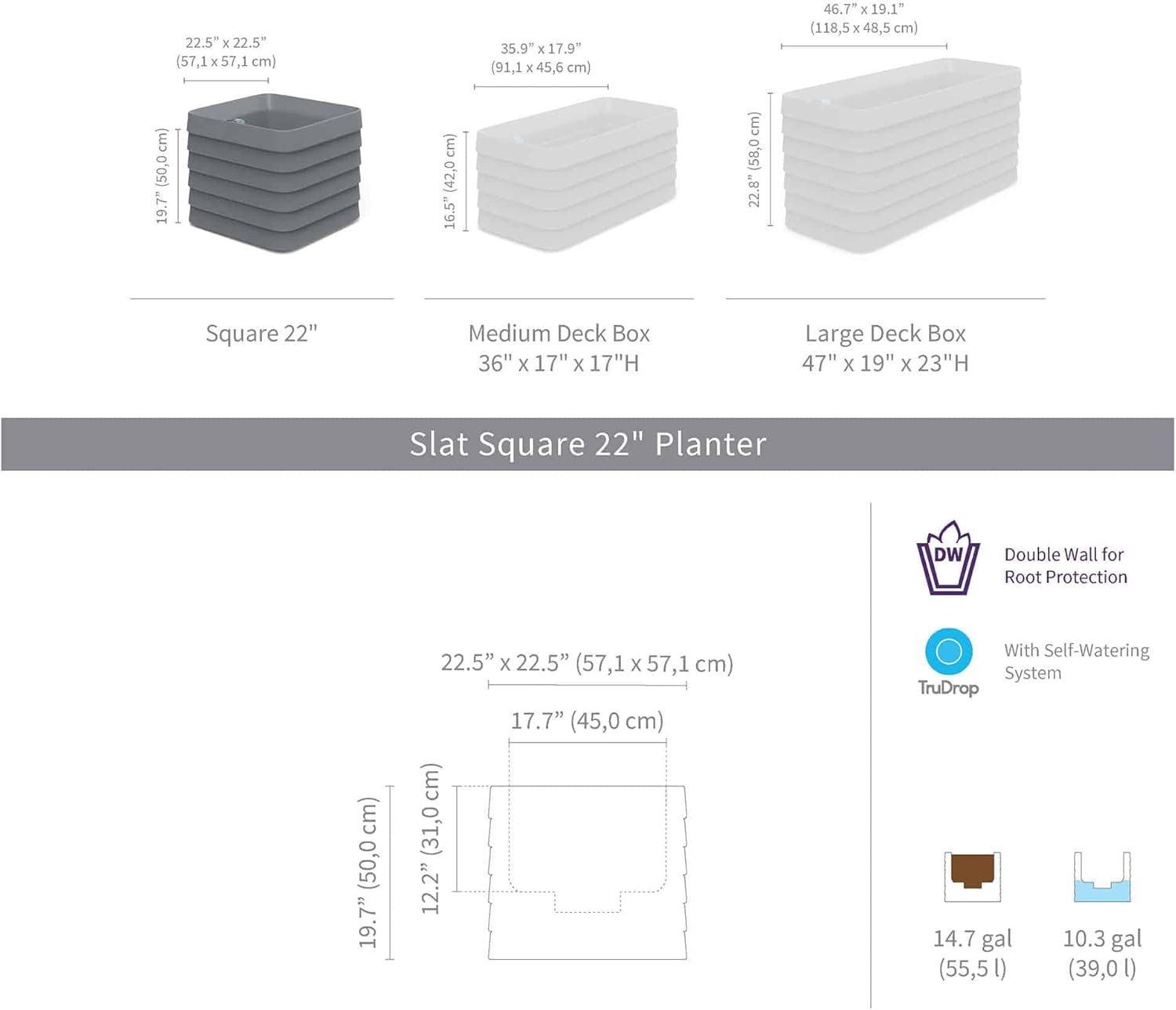 - All Weather Planter: The Slat weather-resistant planter box is built to endure both hot summers and cold winters, backed by a 10-year warranty. Its double-walled construction protects roots and ensures lasting durability for indoor and outdoor use.
