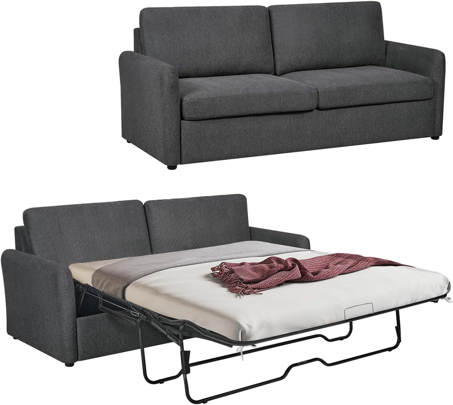 - 【Durable Solid Wood and Steel Frame】Crafted with a sturdy solid wood and steel frame, this sleeper sofa bed evenly distributes weight and supports up to 400 lbs, ensuring exceptional durability and reliability for daily use and overnight guests.