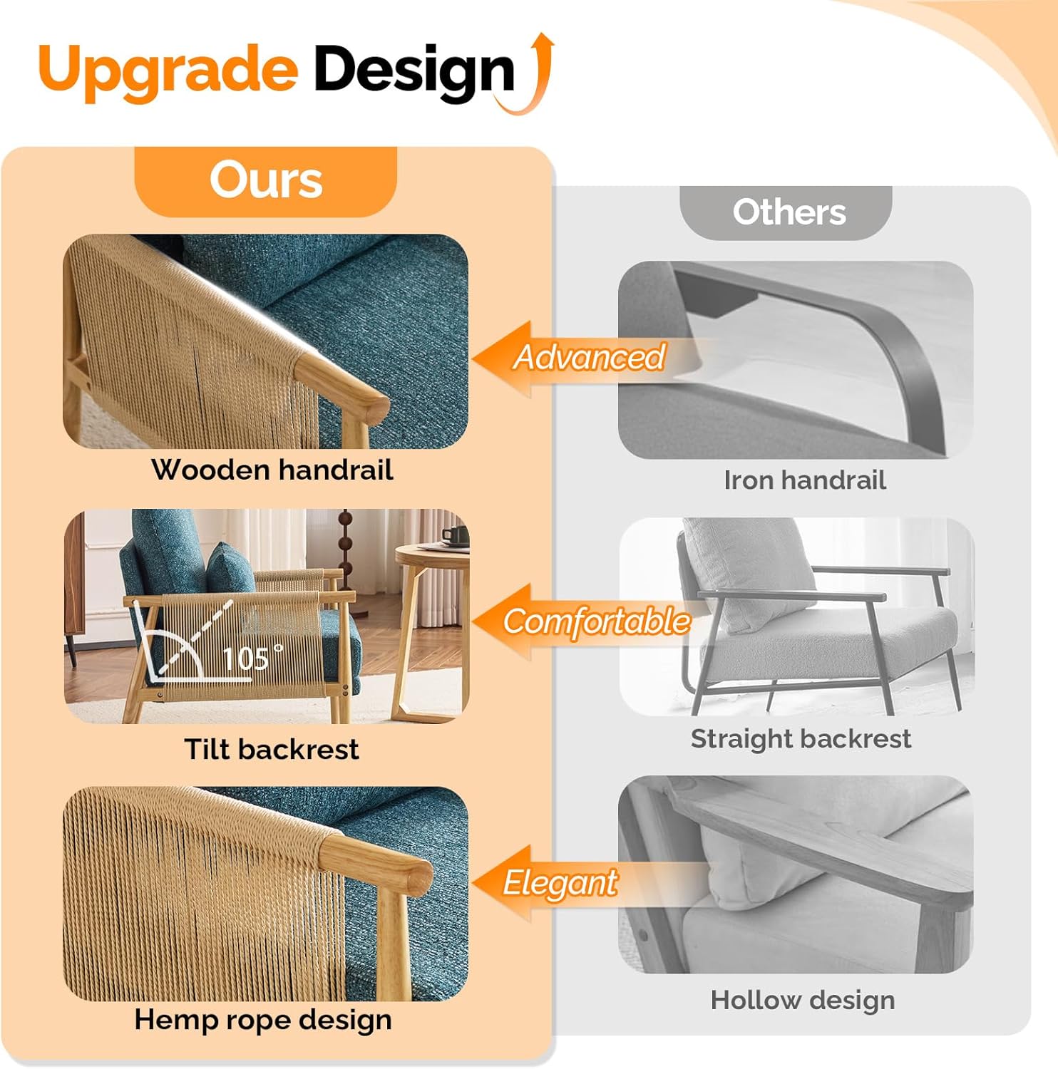 - Braid Design : The Boho-inspired Braid Accent Chair showcases elegant paper cord weaving across its angled armrests. Its thoughtful design combines comfort and style with a medium-height backrest and plush cushioning. This piece seamlessly blends casual and sophisticated interior comfort, perfect for home decoration.The two chairs will be shipped in separate packages. Please note that they may not arrive at the same time.