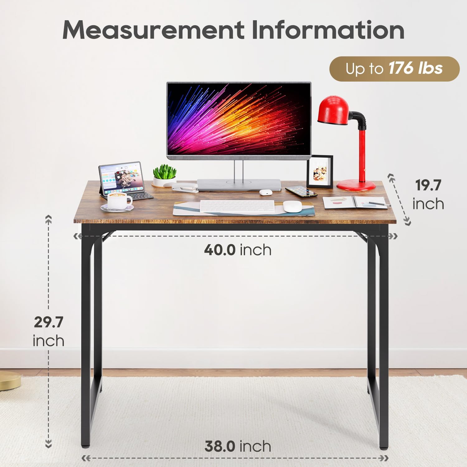 PayLessHere | 39 Inch Computer Desk | Brown | Office Desk with Metal Frame, Adjustable Feet | Water-Resistant, Scratchproof Surface | Sturdy Writing Table for Home Office or Study | Pack of 2