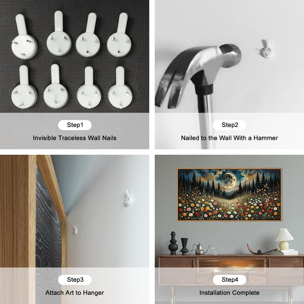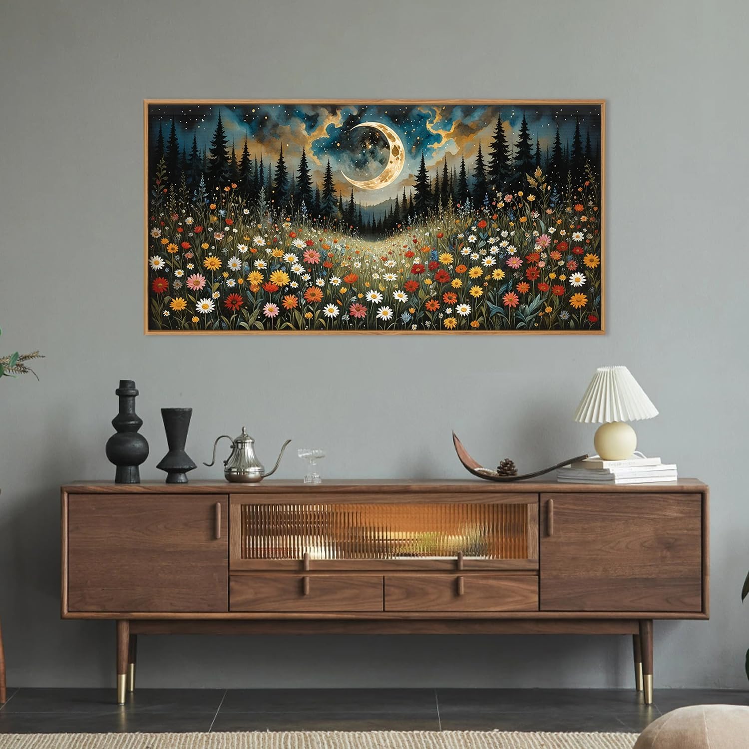 - 【Eco-Friendly and Durable】The Mystical Moon framed Wall Art is made from large thickened canvas material, ensuring their long-lasting and sturdy nature. The printing process involves high-quality inks that are resistant to fading over time. Every aspect of the creation, from the materials used to the production process, adheres to the highest standards of quality.