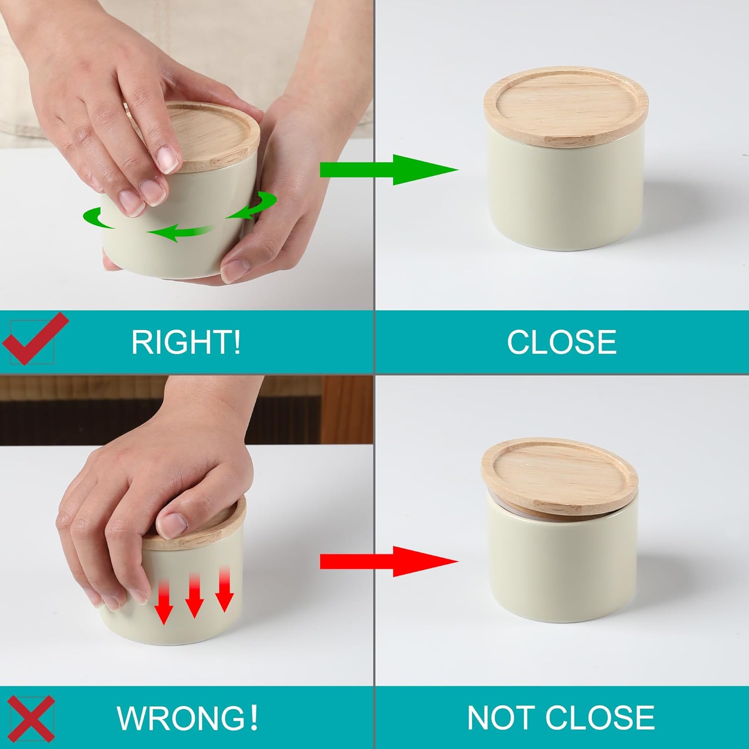 - PROFESSIONAL MATERIAL - Sweejar food storage containers are made of food grade, smooth porcelain. The containers with wooden lid and rubber seal to ensure a true airtight seal and lightproof. They are good for maintaining food and seasoning fresh.