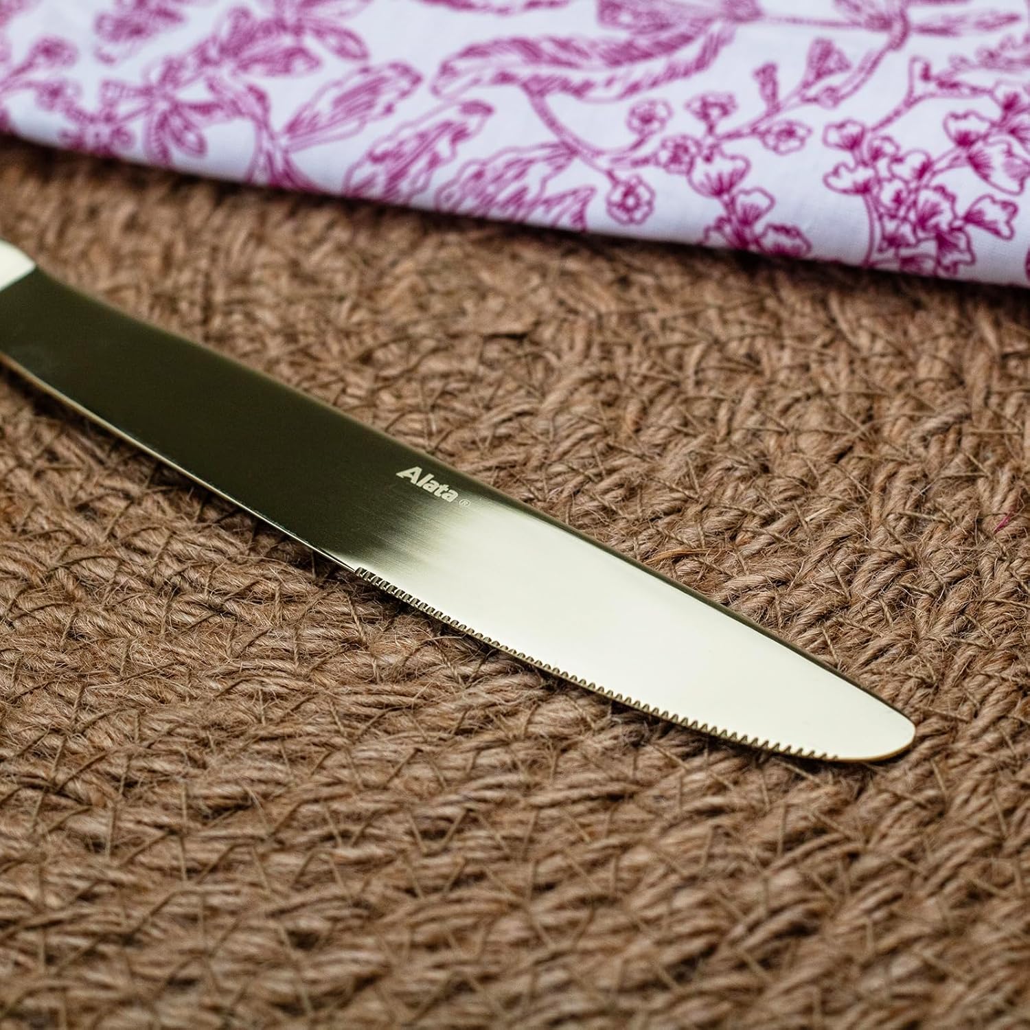 Alata Kate Champagne Gold Mirror 40-Piece Silverware Set,Service for 8,Stainless Steel Flatware Set,Mirror Cutlery Set,Dishwasher Safe