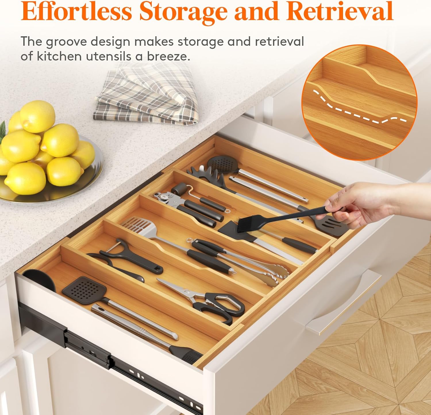- Extra Large Capacity: Extra-large capacity design provides spacious space for kitchen utensils like spatulas, ladles, knives, tongs and more, keeping your drawer tidy and organized. Groove design makes utensils easily accessible, saving you time