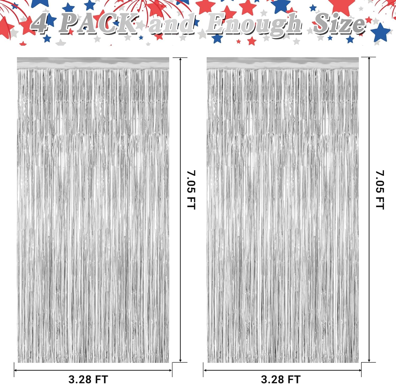 4 Pack Party Decorations, Metallic Silver Backdrop, Photo Booth Props Silver Curtains Tinsel Backdrop Foil Streamer, 21st Birthday Decorations Bachelorette Decor