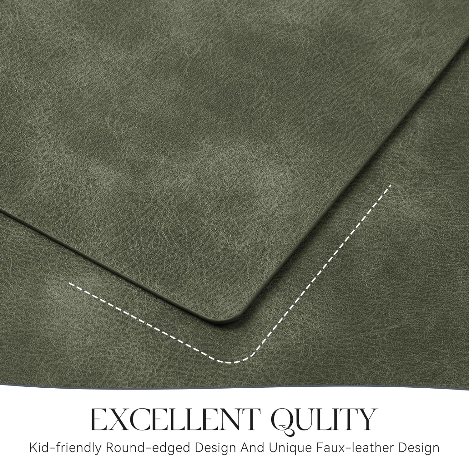 MOSAYT Vinyl Placemats Set of 6-12 X 17 Inch - Faux Leather 100% Waterproof Oil-Proof Wipeable PU Place Mats, Heat Resistant Reversible Table Mats for Kitchen, Dining, Outdoor (Olive Green)