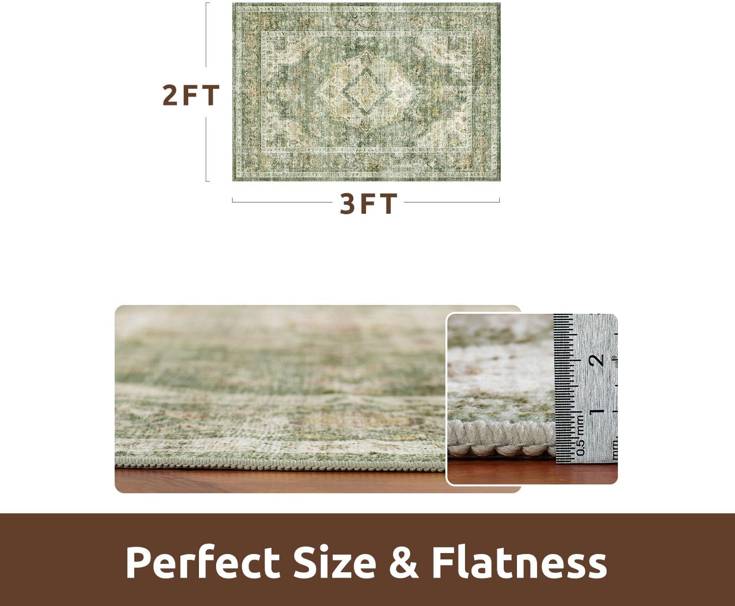AMOAMI-2X3 Small Rug-Washable Rugs Entryway Mat Indoor-Soft Vintage Non Slip Rugs for Kitchen Laundry Room Bathroom Green Decorative Accent Rug for in Front of Sink 24 Inch x36 Inch