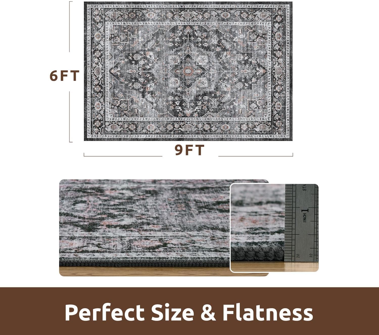 AMOAMI-Area Rug 6X9 Rugs for Living Room-Vintage Sof Dark Grey & Black Rugs for Bedroom-Non Slip Carpet-Machine Washable Rug for Dining Room Living Room Bedroom Office Under Table