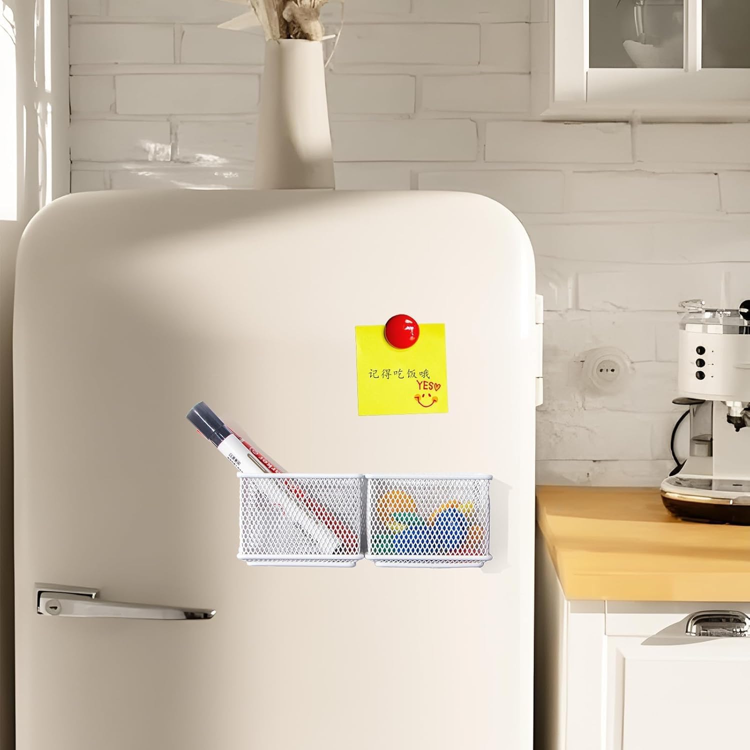 - Storage Helper: The small storage cabinet magnetic pen holder can be used to organize essential writing supplies, such as markers on the magnetic whiteboard, pens and pencils on the desktop, as well as scissors, sticky notes and small kitchen items
