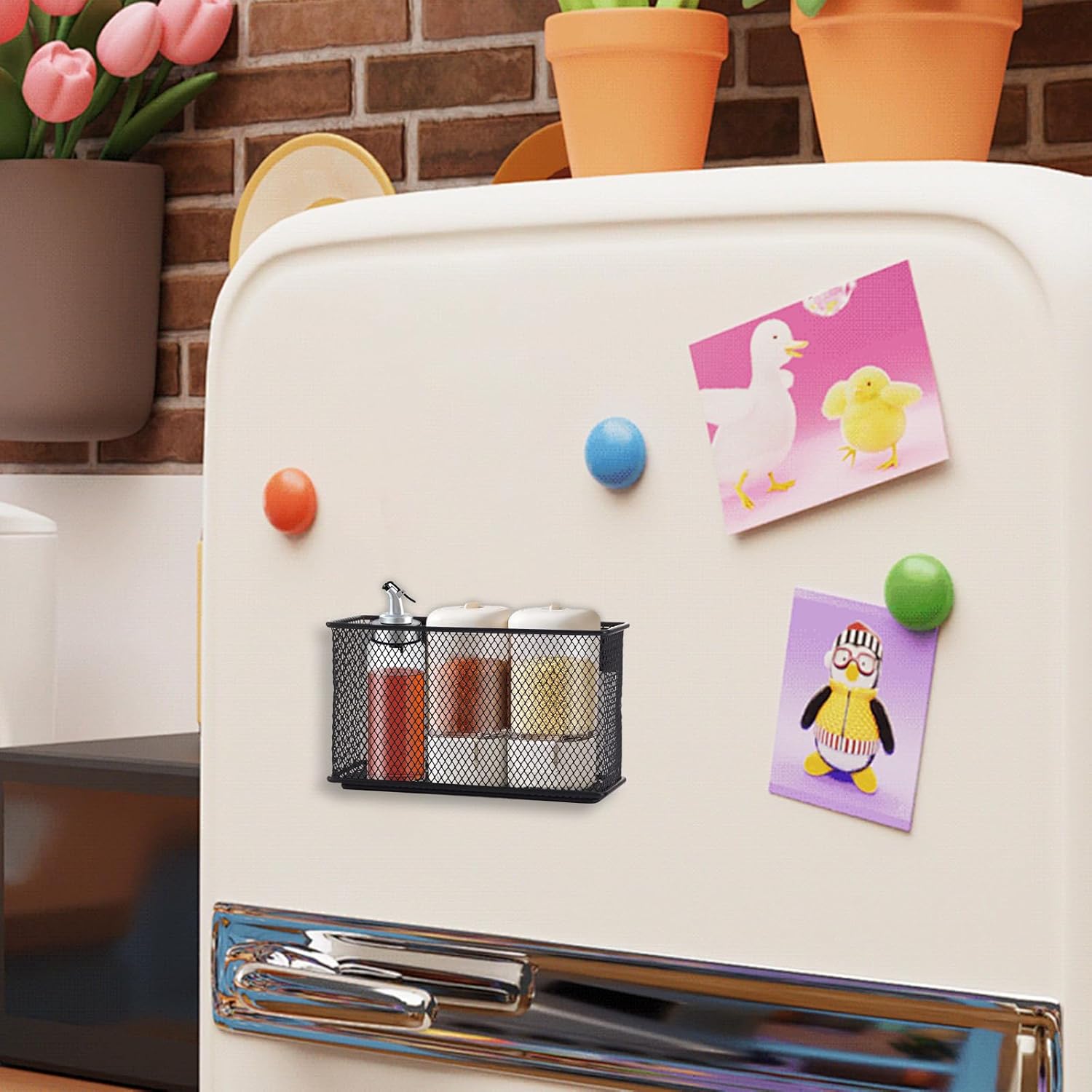 - Save Space: The size of magnetic spice rack for refrigerator is 6.1'' × 2.2'' × 3.5'', not occupying too much space. It can well organize pens, pencils, markers, keys, notes, keeping your locker and desk tidy