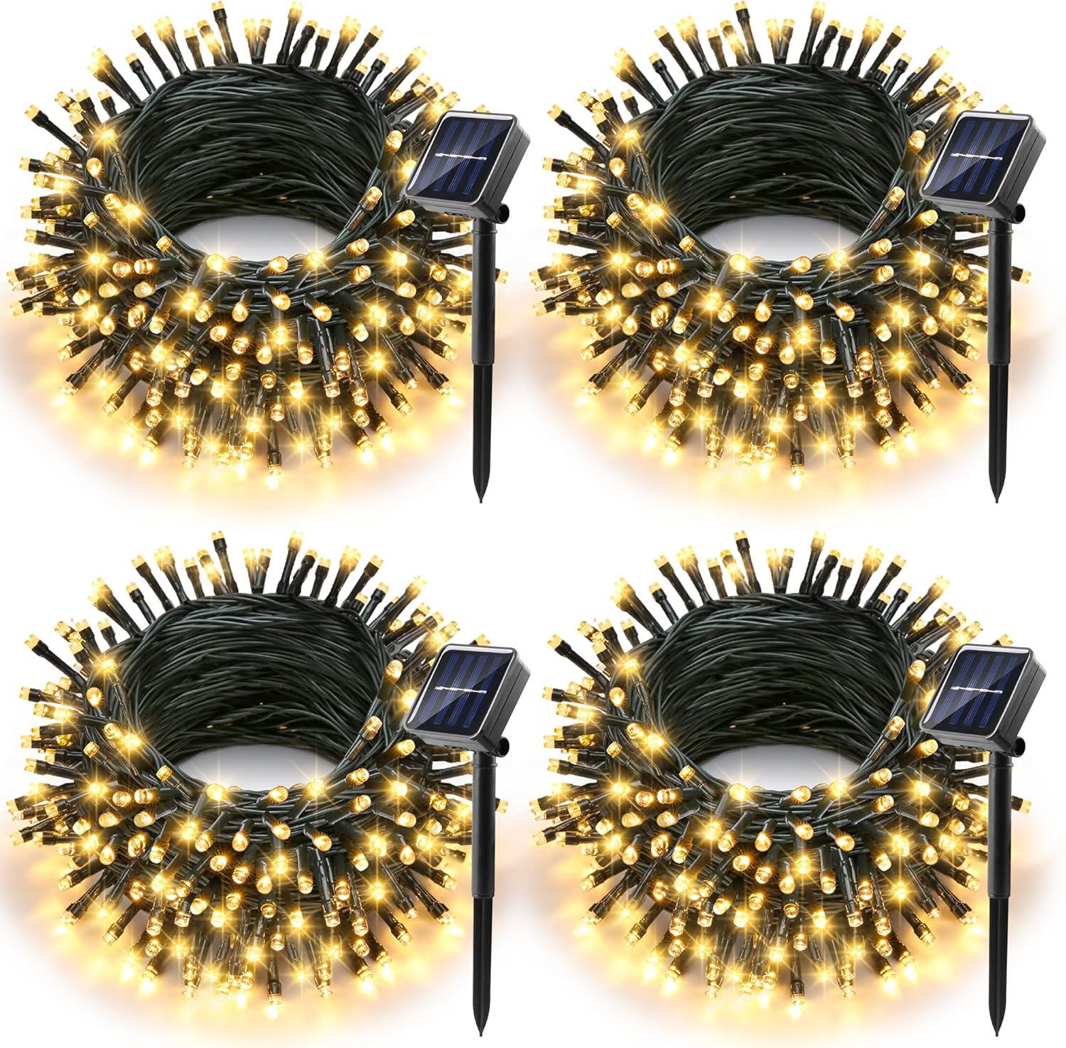 - Easy to Install: 4 Pack ,each string 39 ft (including 6.5 ft lead cable) with a solar panel and ground stake is ideal for wrapping around trees or decorating various outdoor spaces. Ensure the solar panel is exposed to sunlight