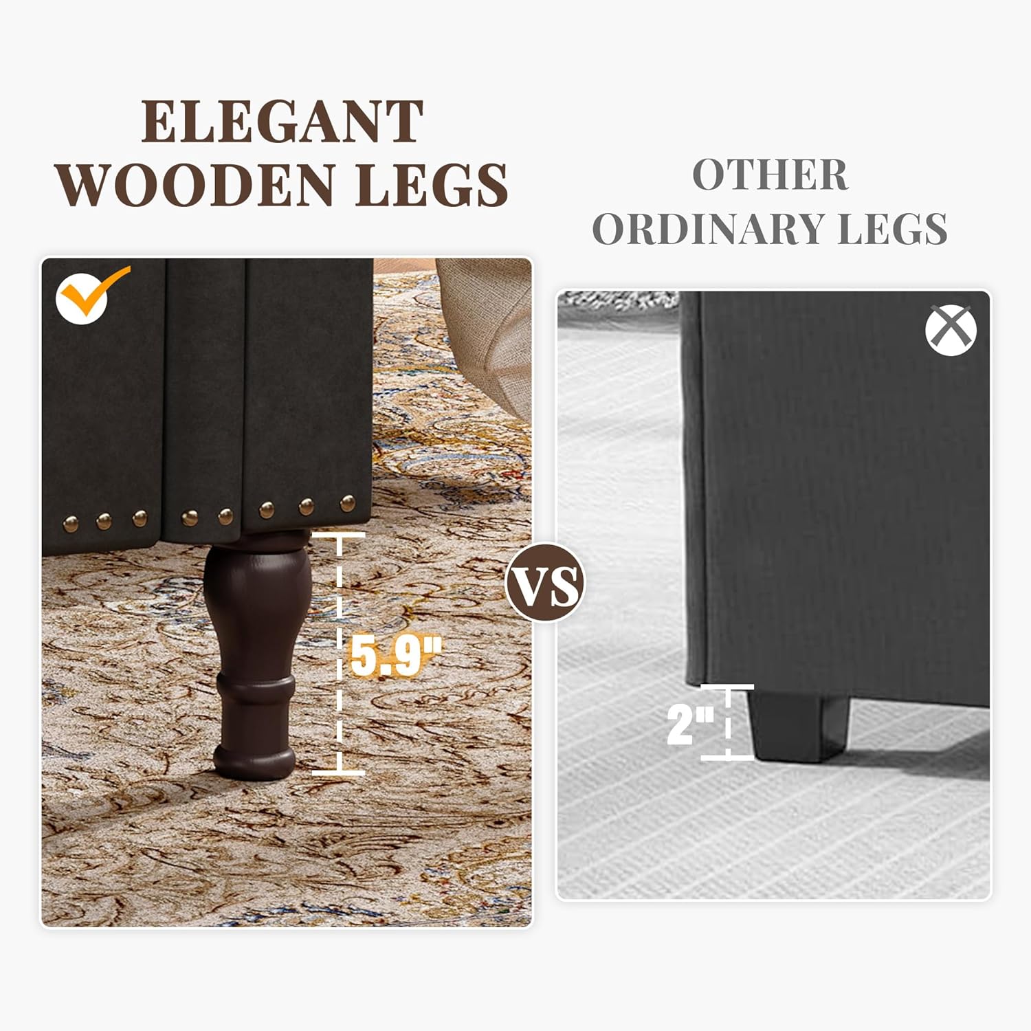 - 【ROLLED ARM & RIVET DECORATION】This bed bench combines rolled arms with vintage rivets, which can reduce wear on the bottom edges. The surface leather is closely adhered to the inner sponge, making it resistant to deformation. The exquisite design decoration adds a sense of fashion to your room while providing practicality and aesthetic appeal.