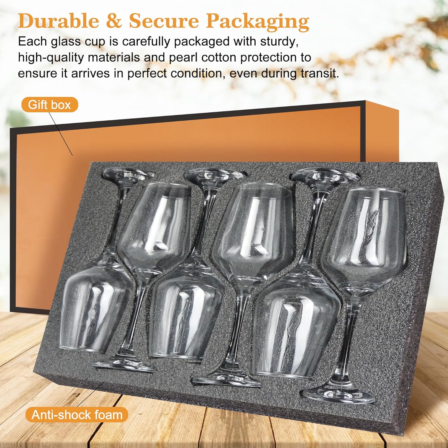 - 【Elegant and Secure Packaging】Glazvia unique clear wine glasses is carefully packaged in an elegant and durable box to ensure safe delivery. The sturdy packaging protects the glasses drinkware during shipping, so you can be confident they will arrive in perfect condition. Whether purchasing for personal use or as a wine glasses gift set, this thoughtful packaging adds an extra touch of sophistication, making the unique wine glasses set of 6 as an wine glass gifts for women.