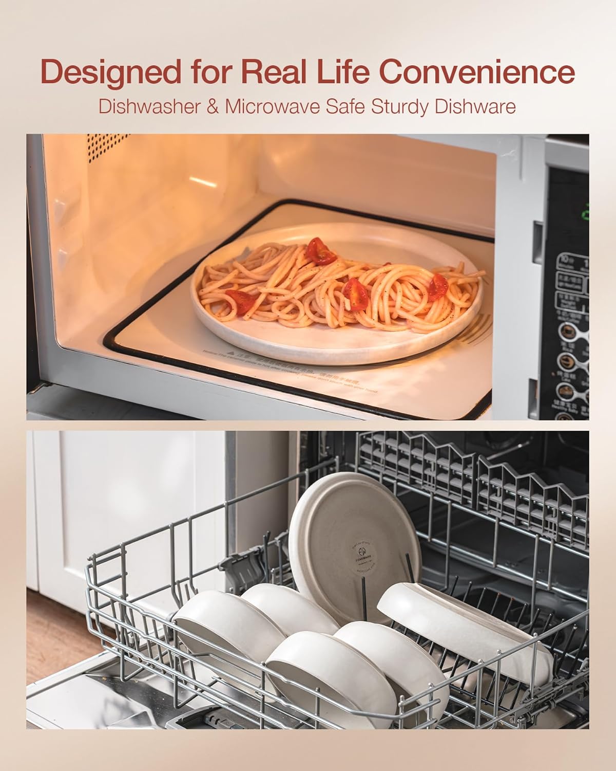 - WITHSTAND THE TEST OF TIME - Made from organic and natural clay, these dish sets are fired at 2340 °F for 13.5 hours, resulting in a sturdy, long-lasting, and chip-resistant product designed for long-term use.