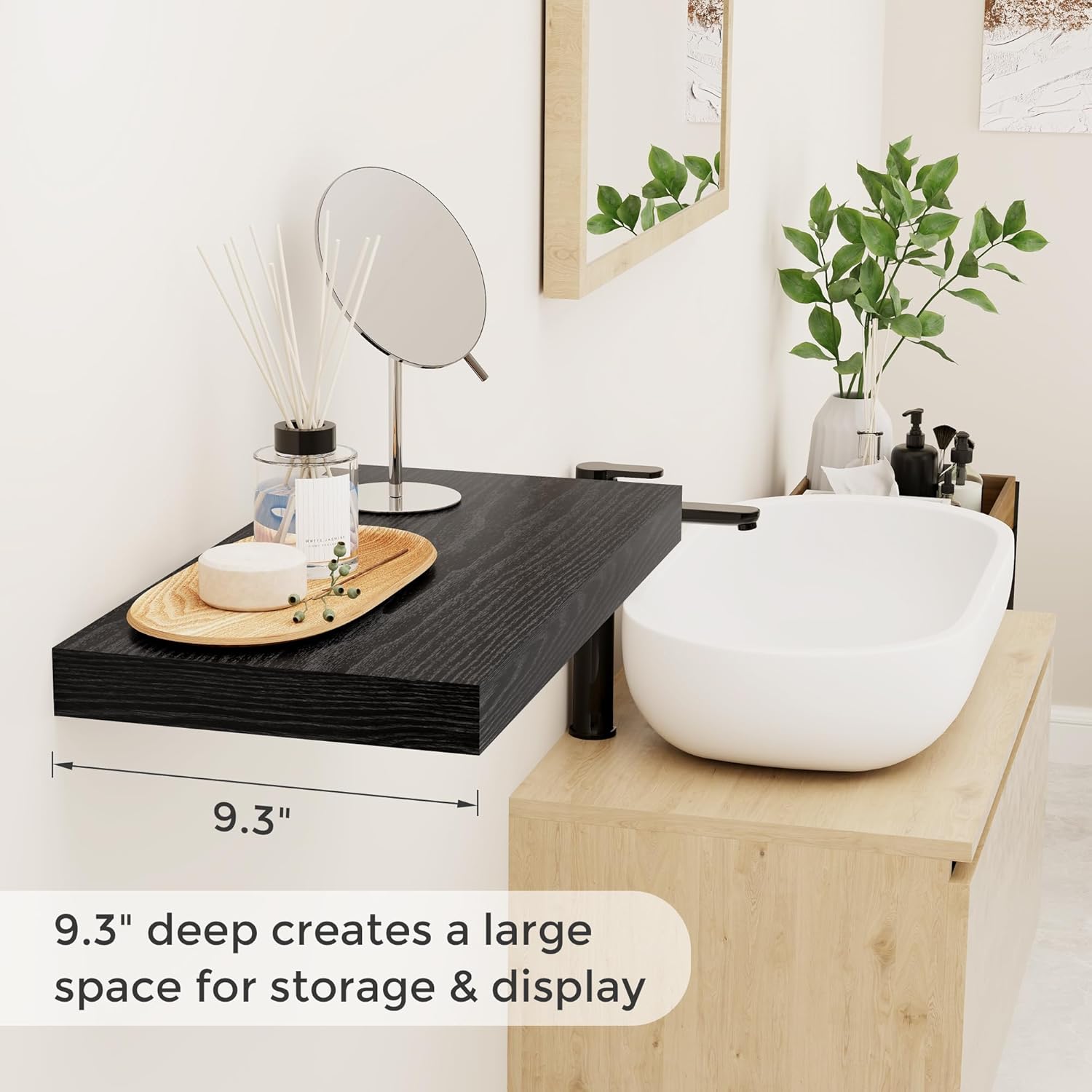 - 【9 INCH DEEP FLOATING SHELF】This extra deeper and thicker wall shelves are 9.3 inches in depth and 1.5 inches in thickness instead of the regular narrow floating shelves, you can put photos, pictures, DVD players, videos, books, toys, and some other knickknack on this beautiful display wooden shelf.