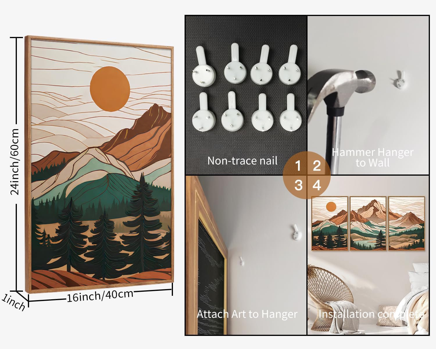 Tinonedraw Mountain Framed Canvas Wall Art Set of 3, Sunrise Forest Woodland Landscape Art Prints, Boho Coloful Ridge Scenery Wall Decor, Wood Pine Wilderness Art Paintings for Living Room Bedroom, Office 16"x24"
