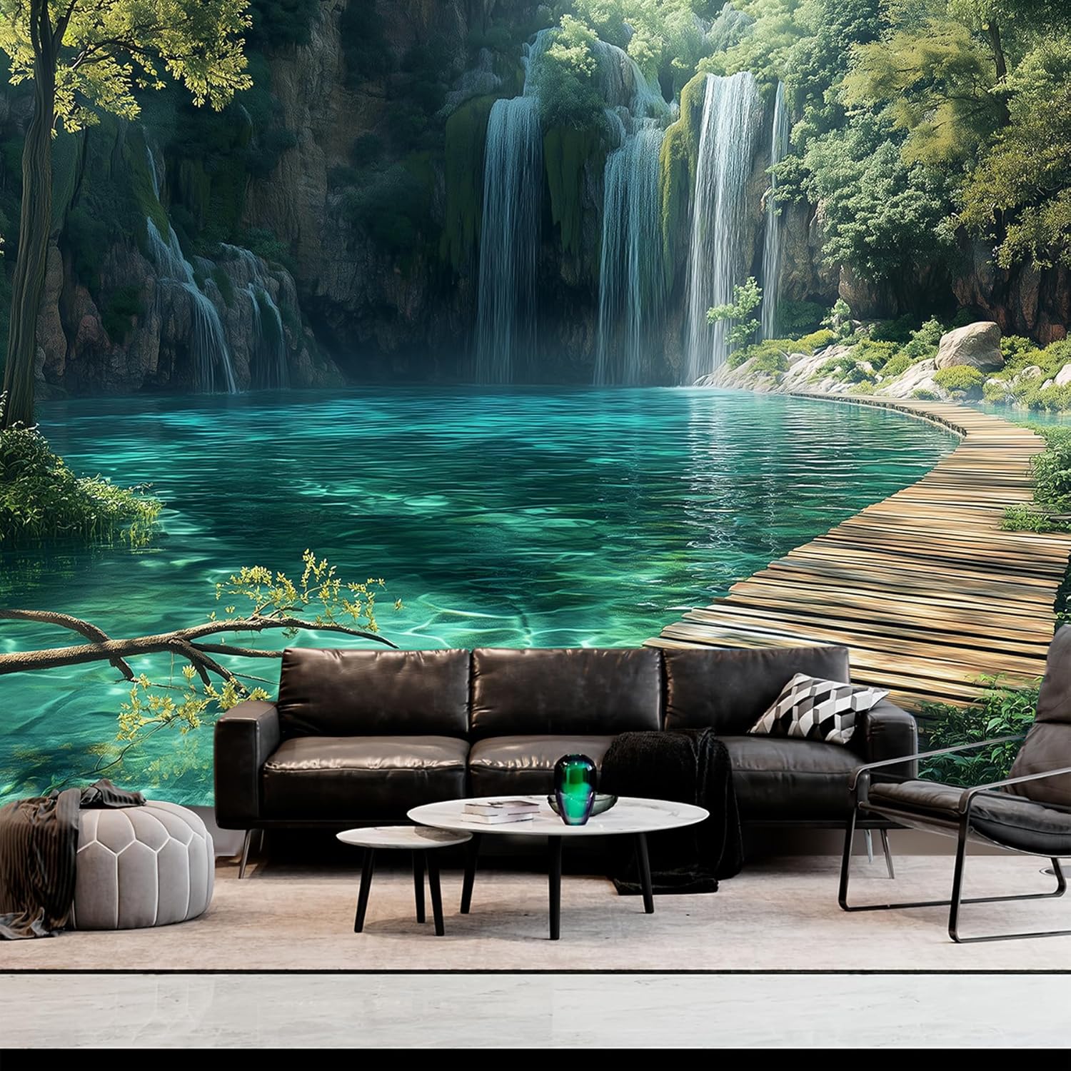BSFHH Nature Tapestry Forest Tree Sea Cave Wall Hanging, Stream Through Rainforest Landscape Wall Art Tapestry for Bedroom Living room (Waterfall, 79"×59", Unframed)