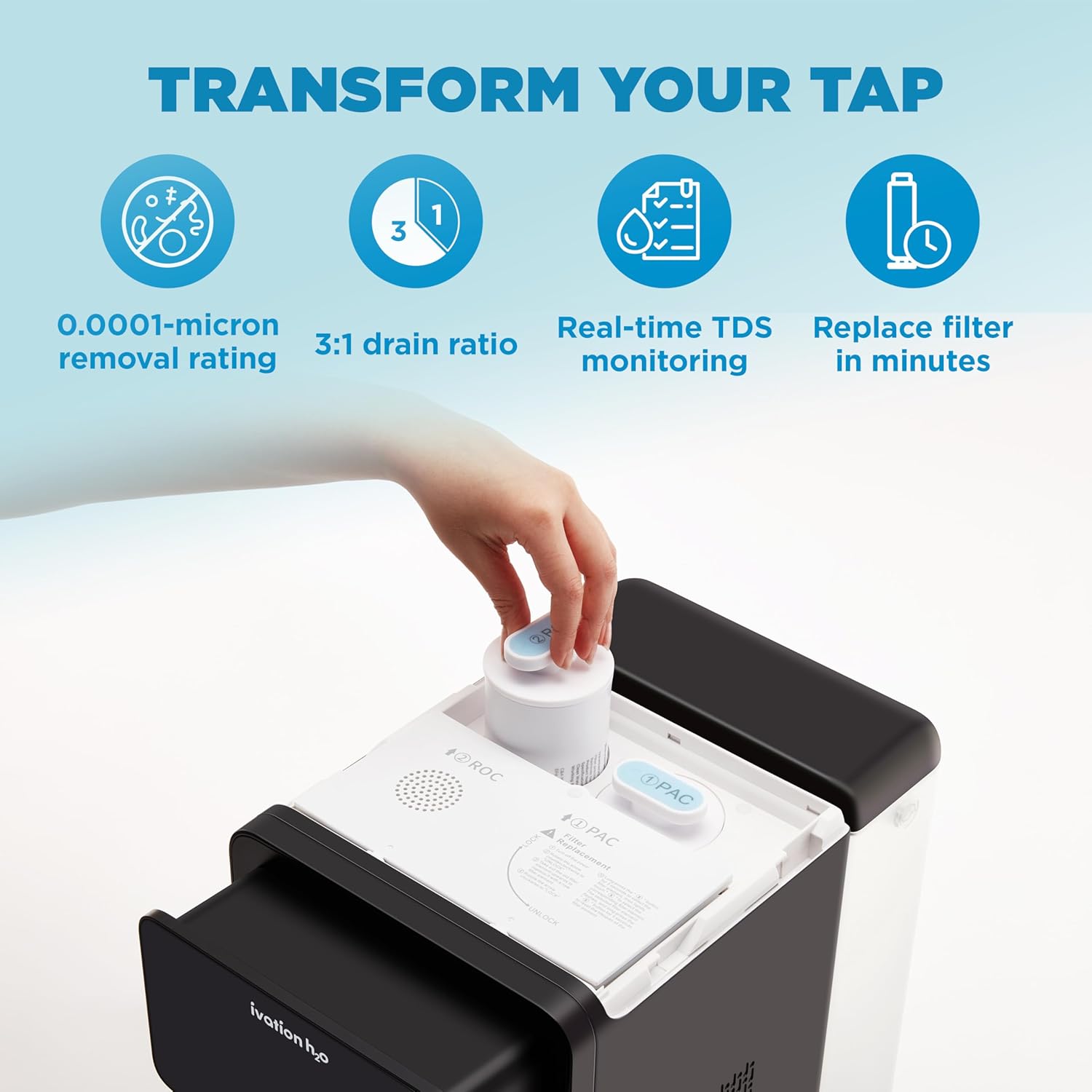 Ivation H2O Hot & Cold, Countertop Reverse Osmosis System, TDS Filter System, 4 Stage RO Water Filtration, 6 Temperature Presets, 3:1 Pure to Drain, Portable Plug-and-Play - Black