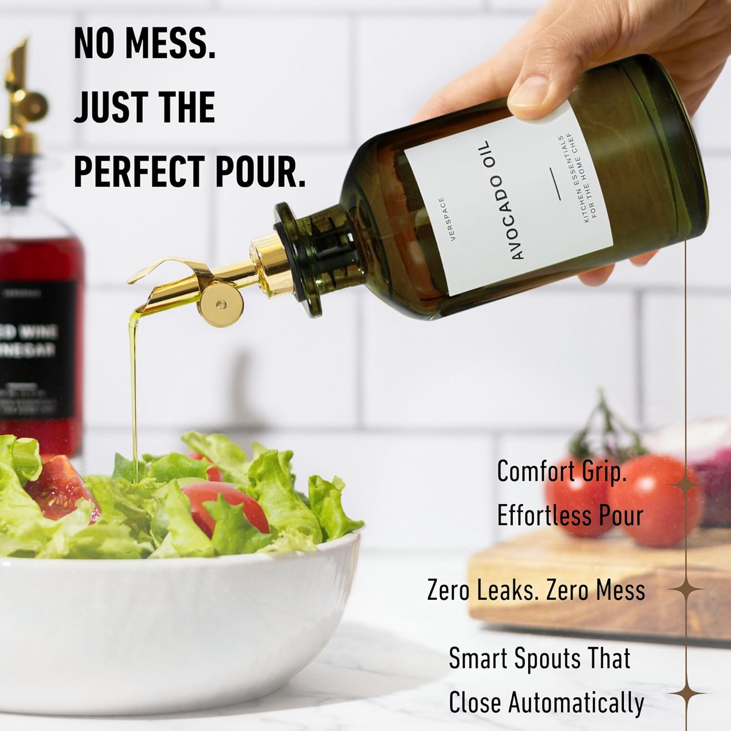 - EASY TO USE, EASY TO CLEAN: From soy sauce to vanilla extract, this oil container pours smoothly and seals automatically. Hand wash to preserve the spouts and bottle’s beauty, and enjoy effortless clean-up every time.