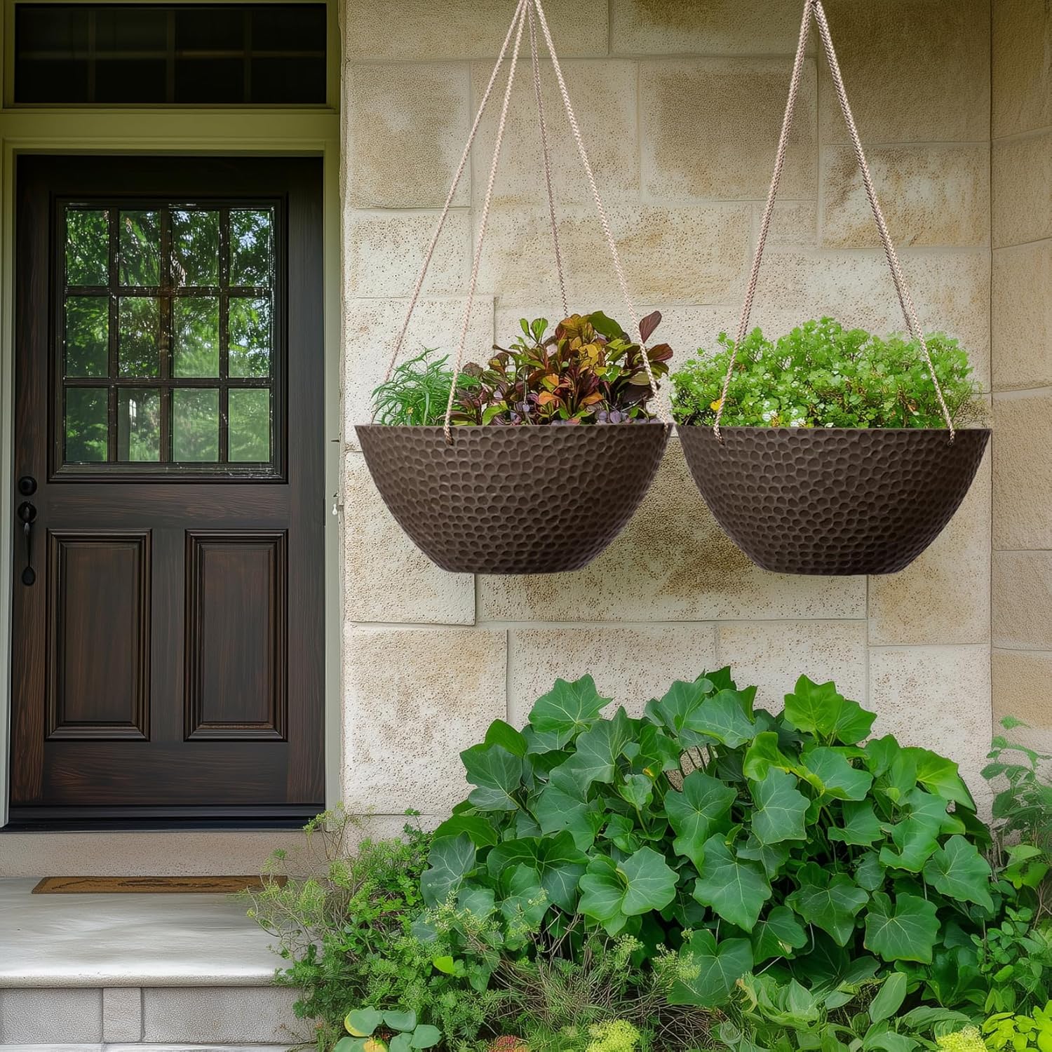- WEATHER RESISTANT - Allow you to enjoy these hanging planters for outdoor plants in all types of weather. Built to withstand intense sun and harsh winter temperatures, free from fade, frost, crack and peel damage. Suitable for both outdoor and indoor uses.