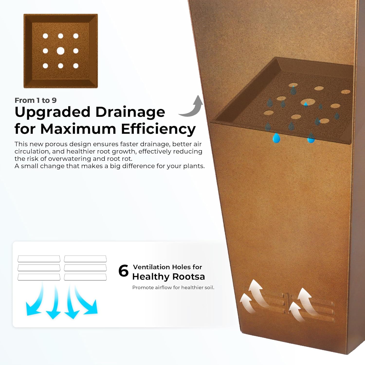 - Slotted Side Ventilation: Designed with slotted ventilation holes on both sides to improve airflow, enhance soil breathability, and support plant health.