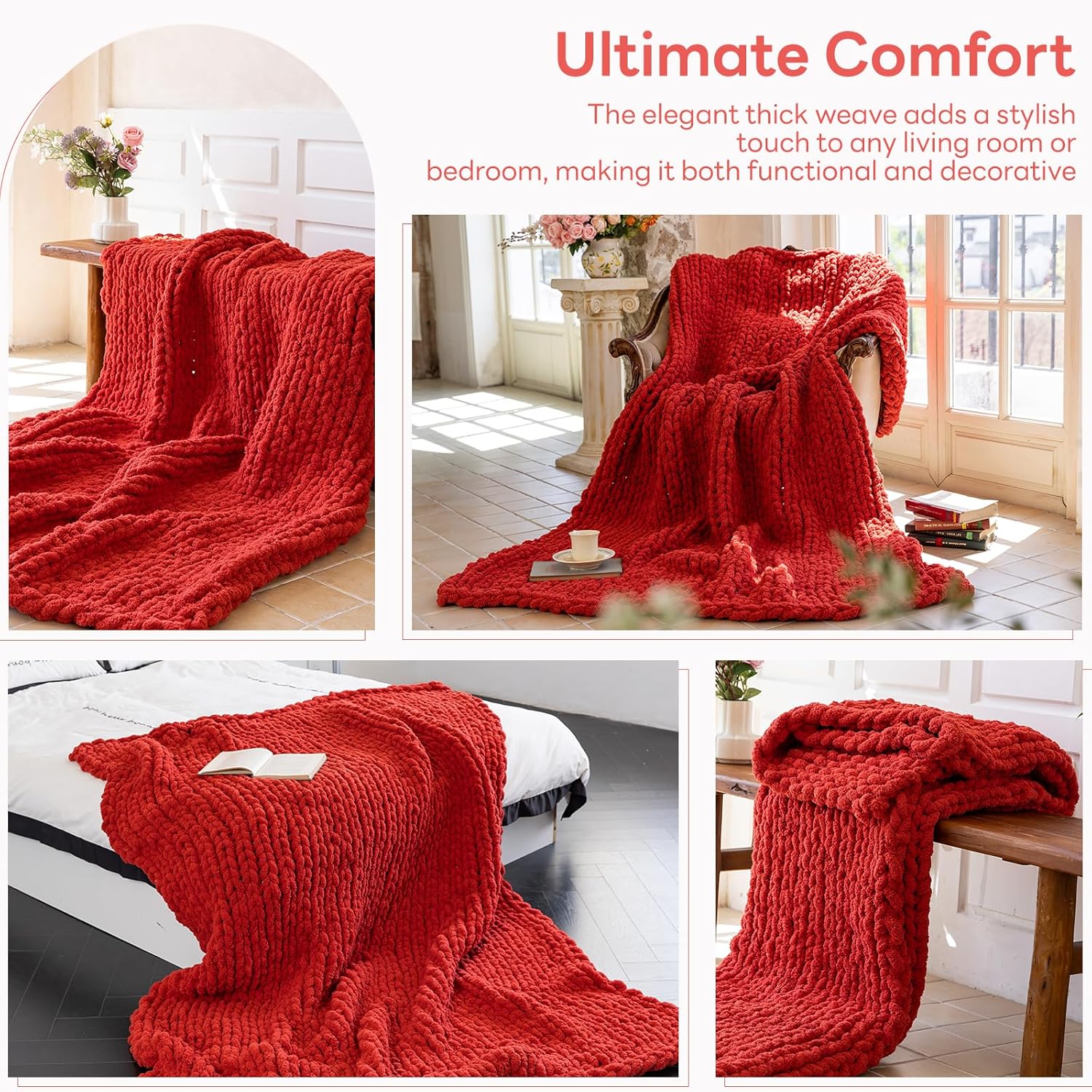 - Soft and Cozy: Made from high-quality, chenille yarn chunky knit blanket provides a soft and warm feel, perfect for cuddling up on cold nights.It will be your comfort companion,Great as chunky crochet blanket for any season