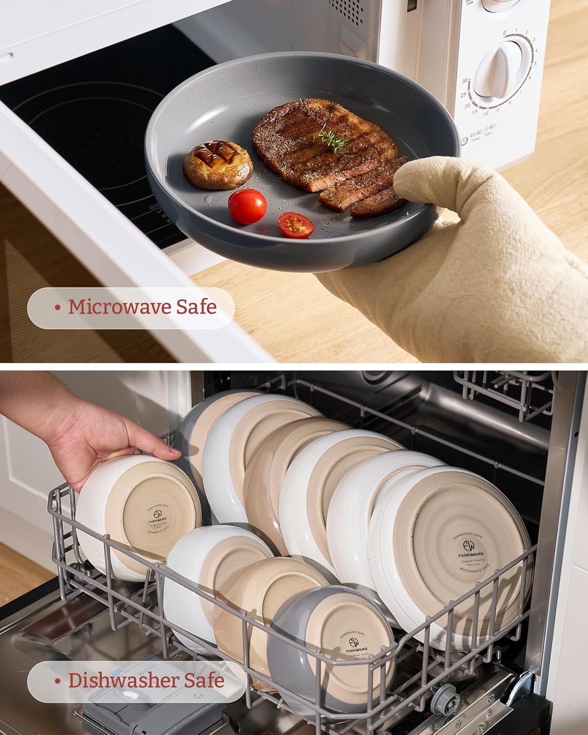 - 【DISHWASHER AND MICROWAVE SAFE】Our pasta bowls have passed microwave and dishwasher safe testing at internationally accredited laboratories. Each plate and bowl is dishwasher safe and microwave safe