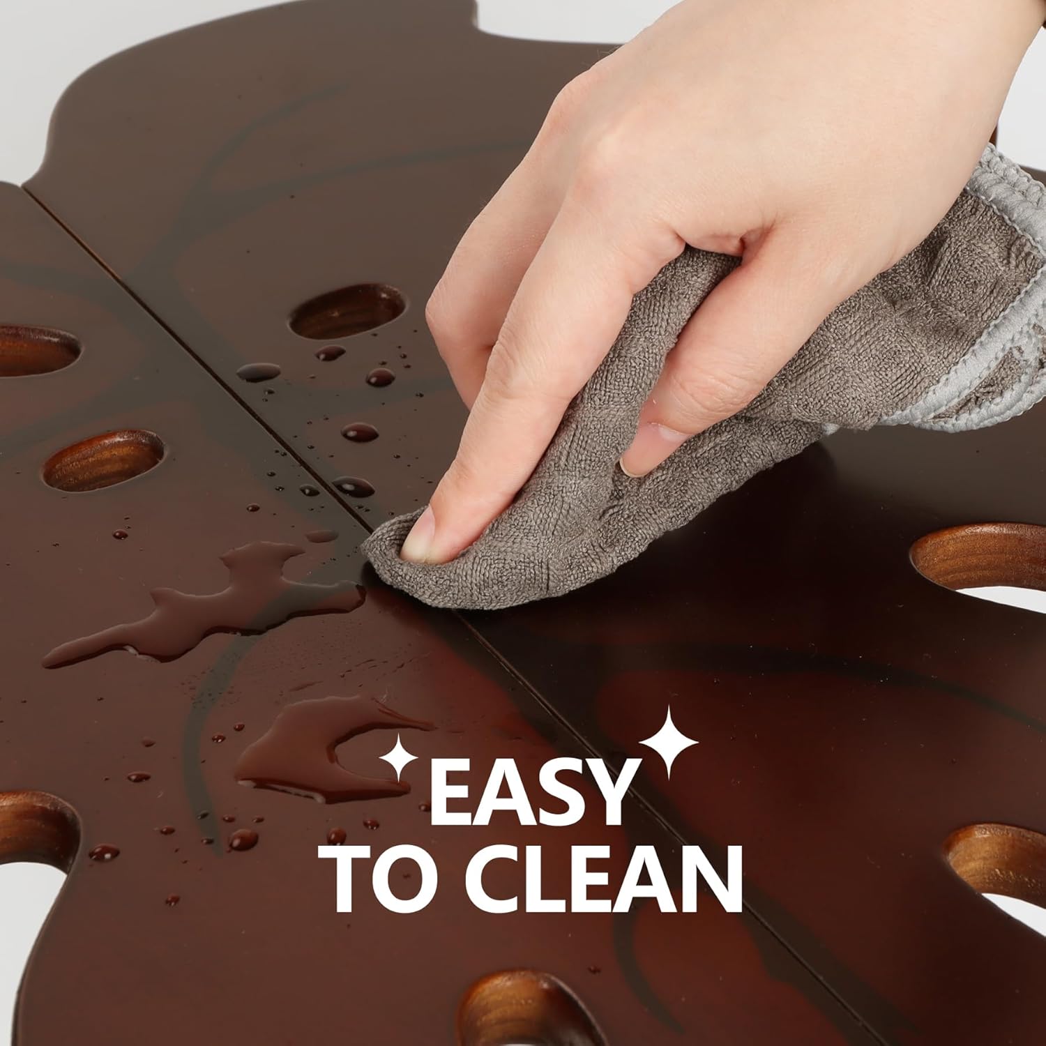 - Blends with Any Home Decor Style: Whether your home is adorned with a bohemian, minimalist, or modern aesthetic, these stylish nesting tables effortlessly integrate into your space. The elegant monstera leaf design on the dark brown tabletops, coupled with the black solid wood legs, complement any color scheme and add a touch of nature-inspired charm.